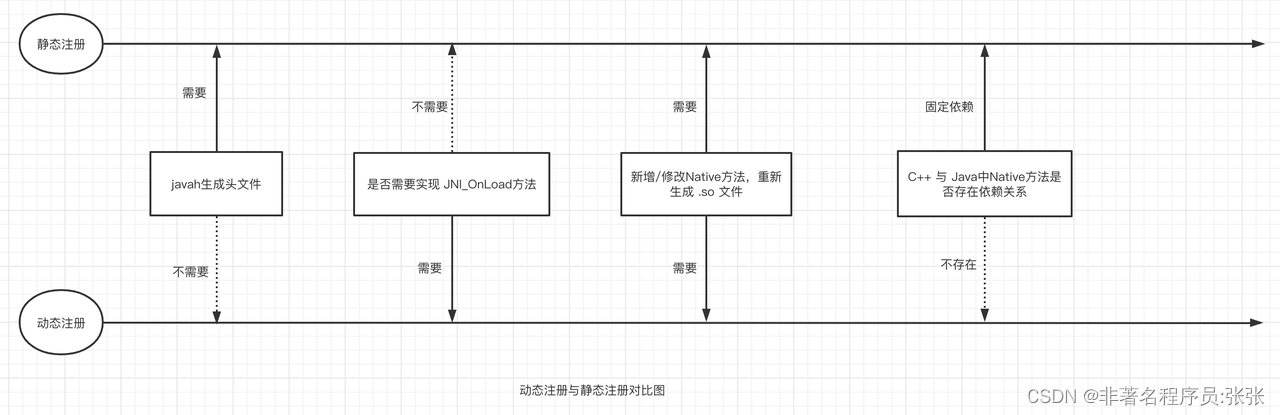 JNI 实现 C++ 与 Java 通信的过程,可以分为两步:首先需要进行注册,也就是将JNI 方法加载到当前应用程序的地址空间中;再者执行native方法的调用。
