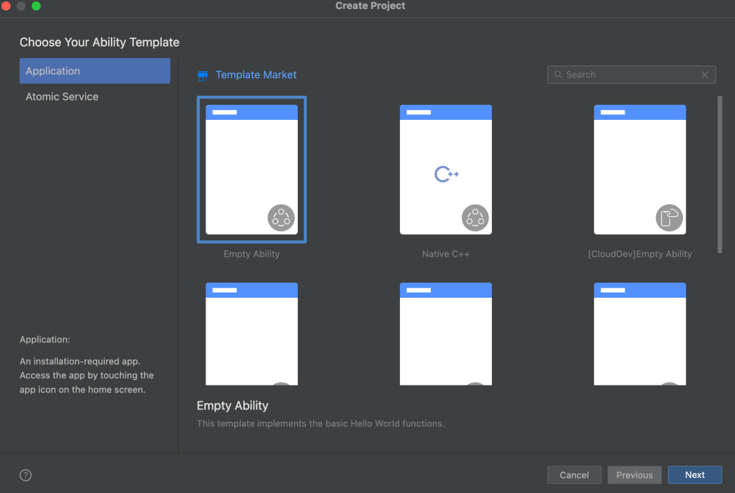 直接访问官网下载DevEco进行安装,这一步简单,没有遇到问题;安装完成后,可以创建一个项目,验证工具是否正常;这里我简单创建了一个Empty Ability进行验证;