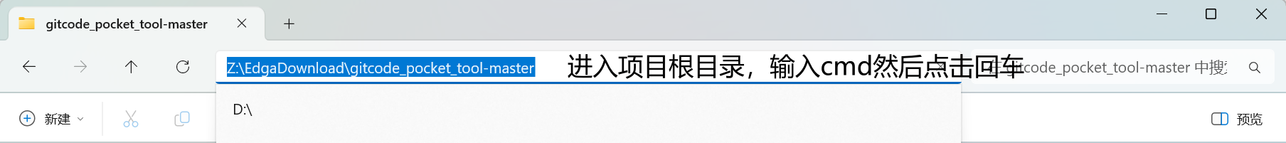 我们打开你解压的项目根目录,输入cmd,然后回车。