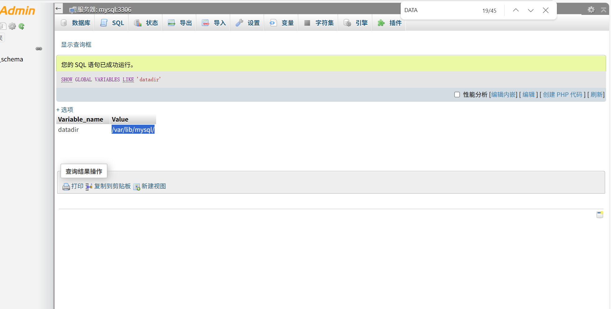 SHOW GLOBAL VARIABLES LIKE 'datadir';