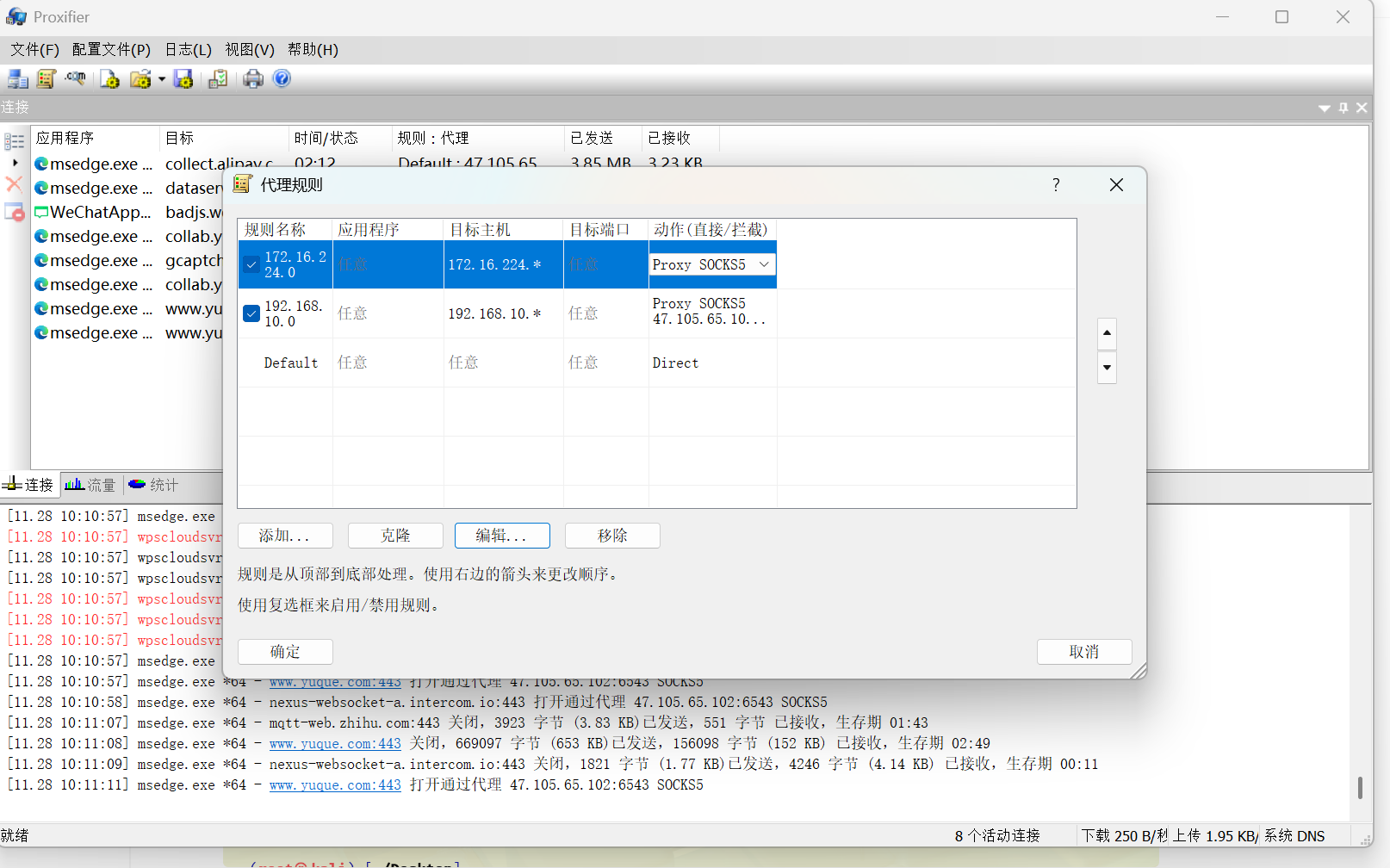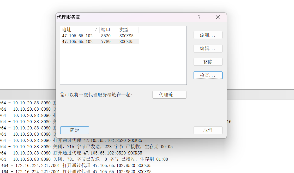 然后在我本地windows主机使用Proxifier.exe配置代理