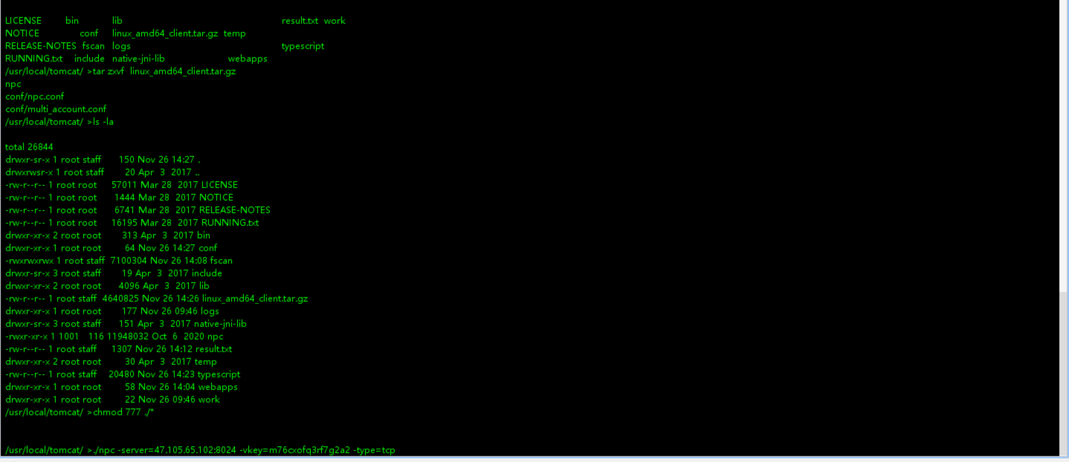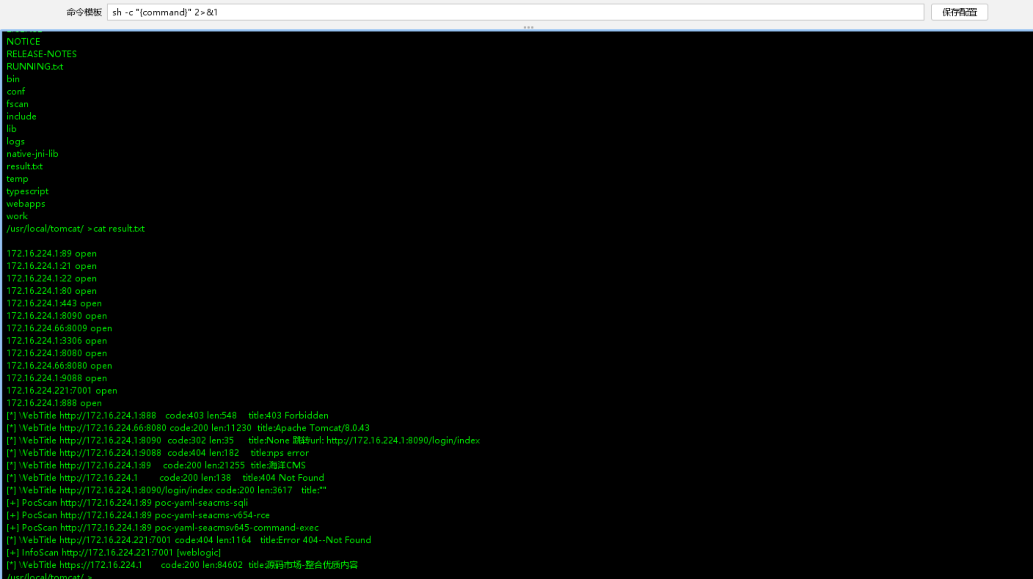 /usr/local/tomcat/ >cat result.txt