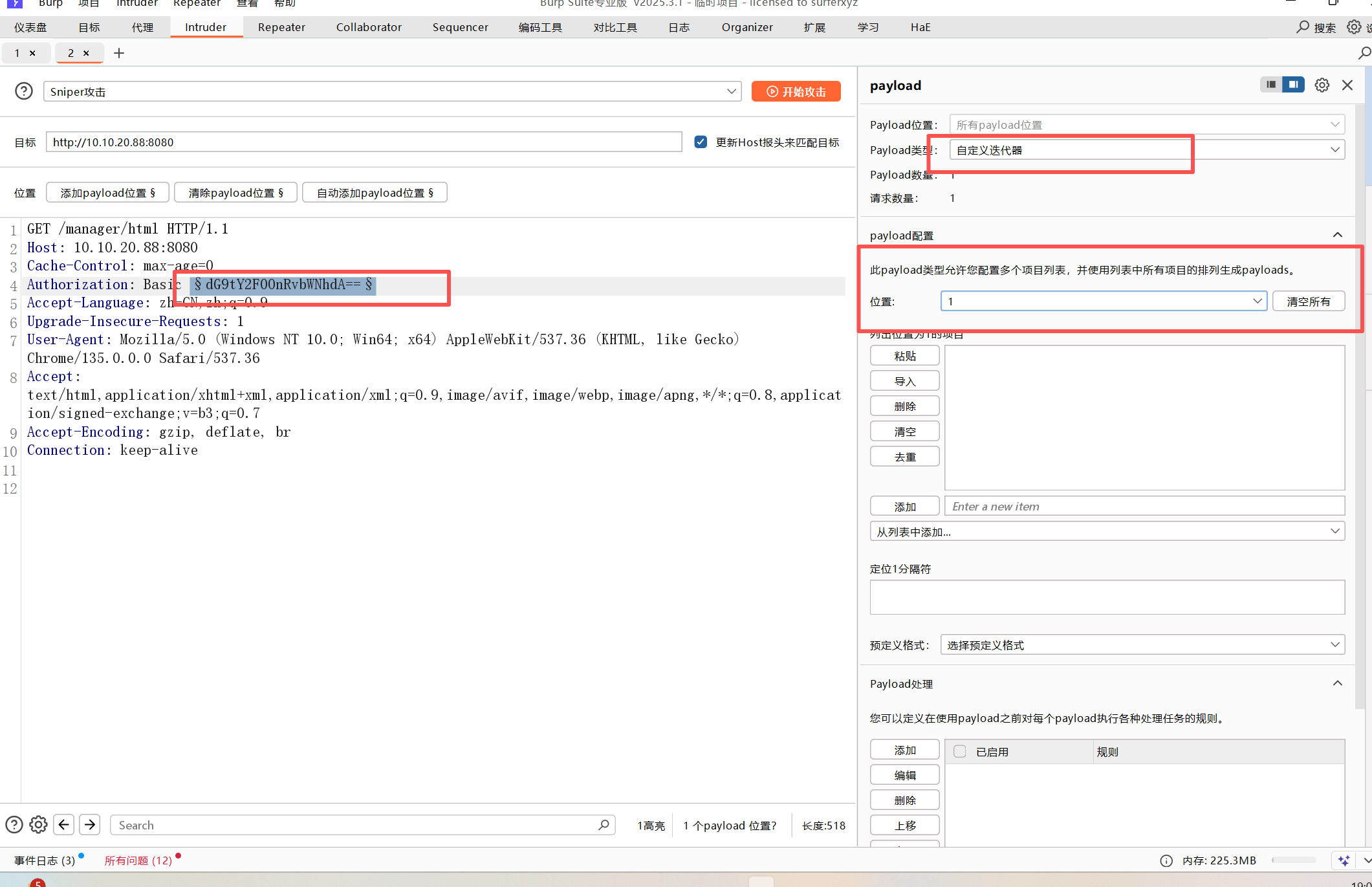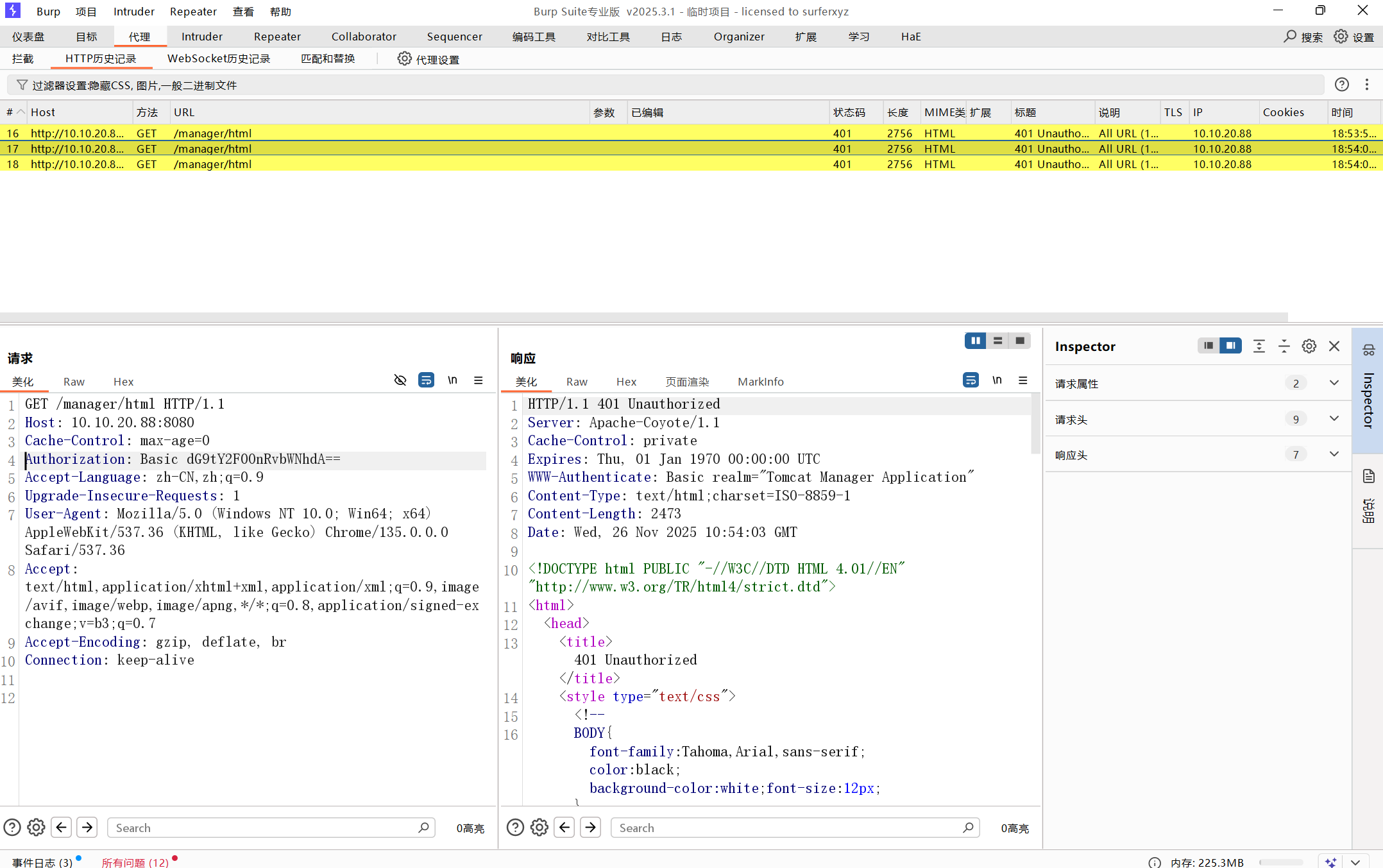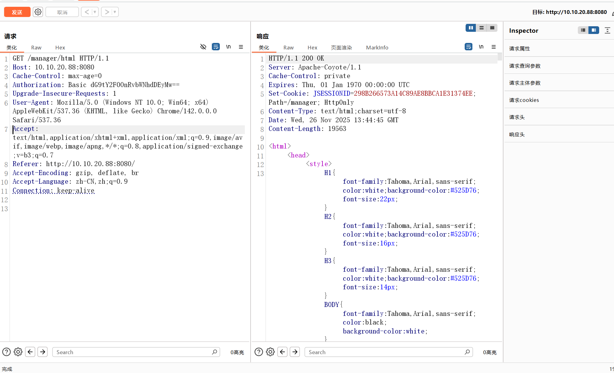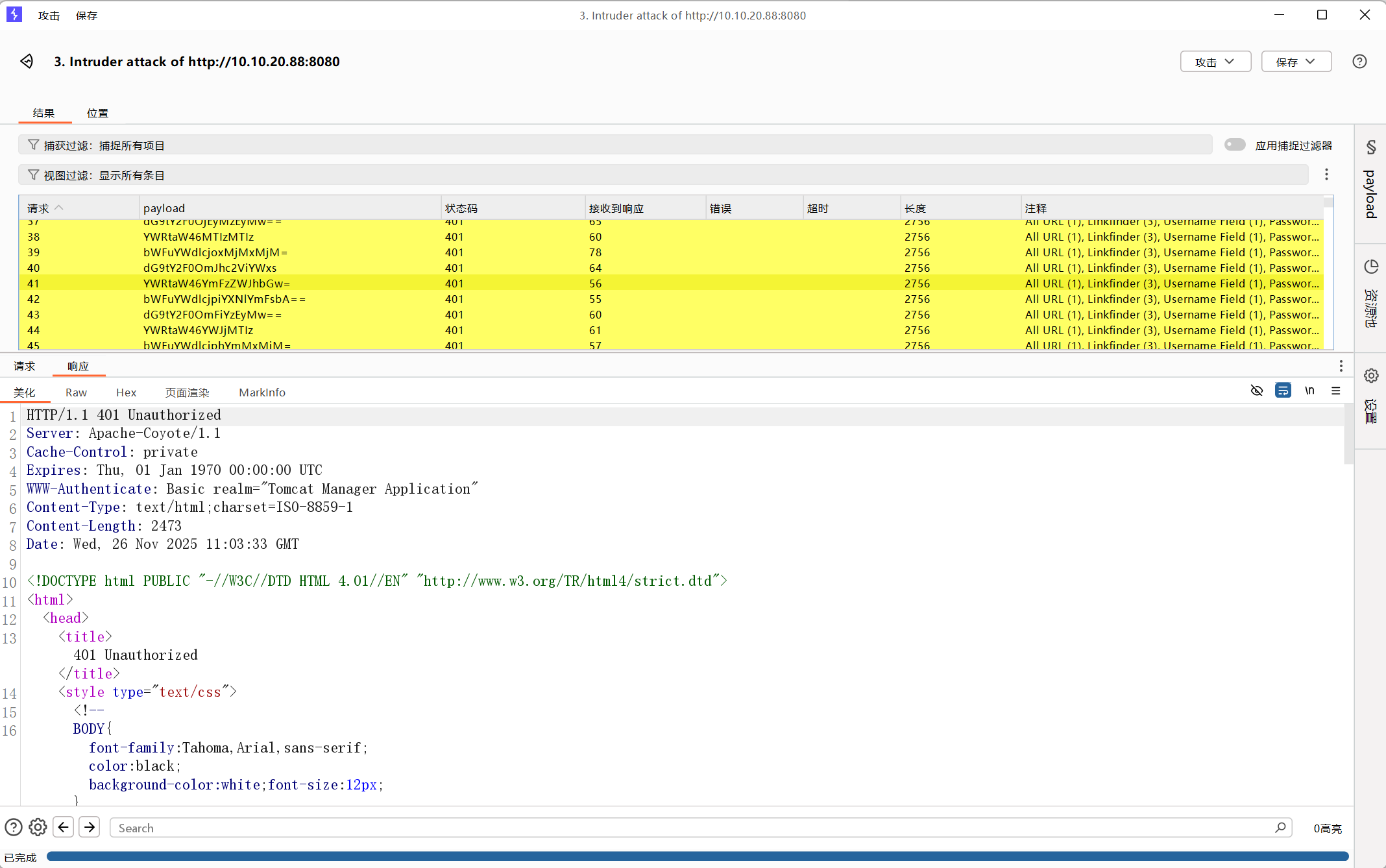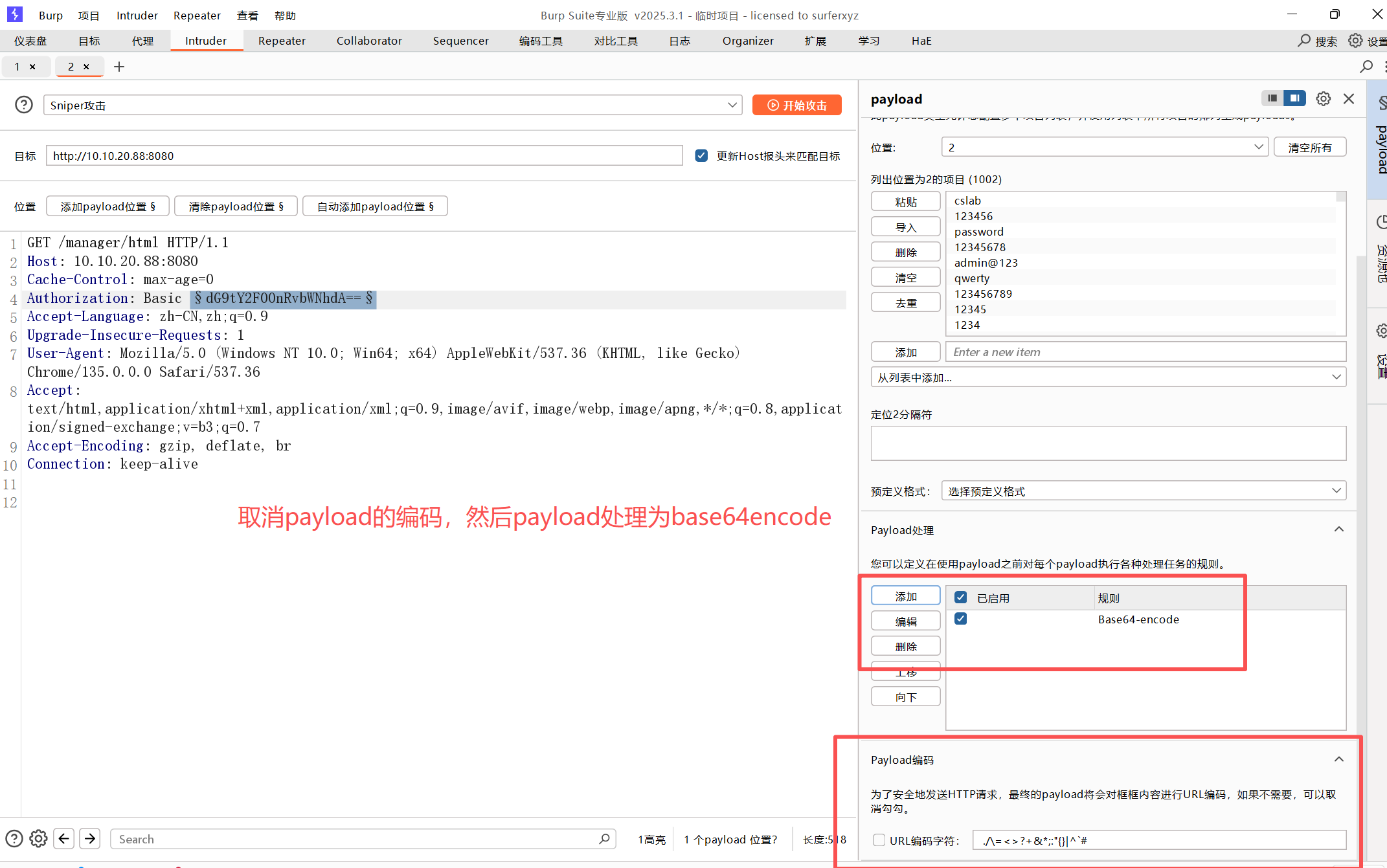 通过抓包可以看到tomcat的basic字段可以爆破一下,是base64编码