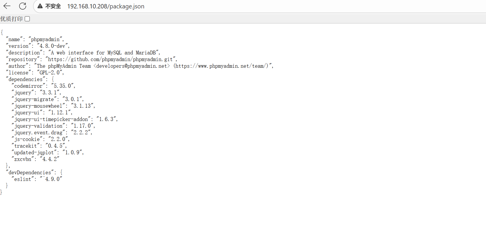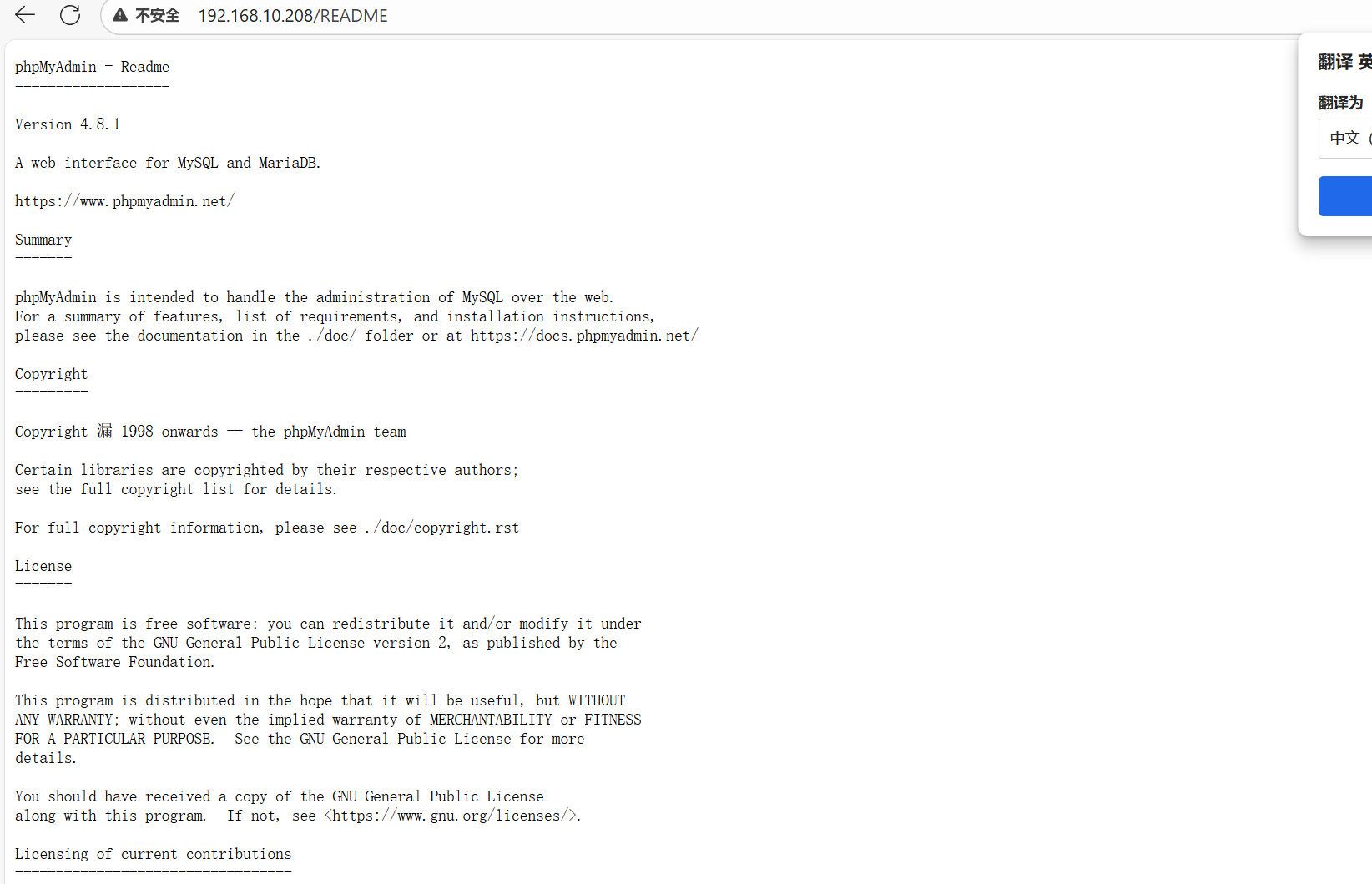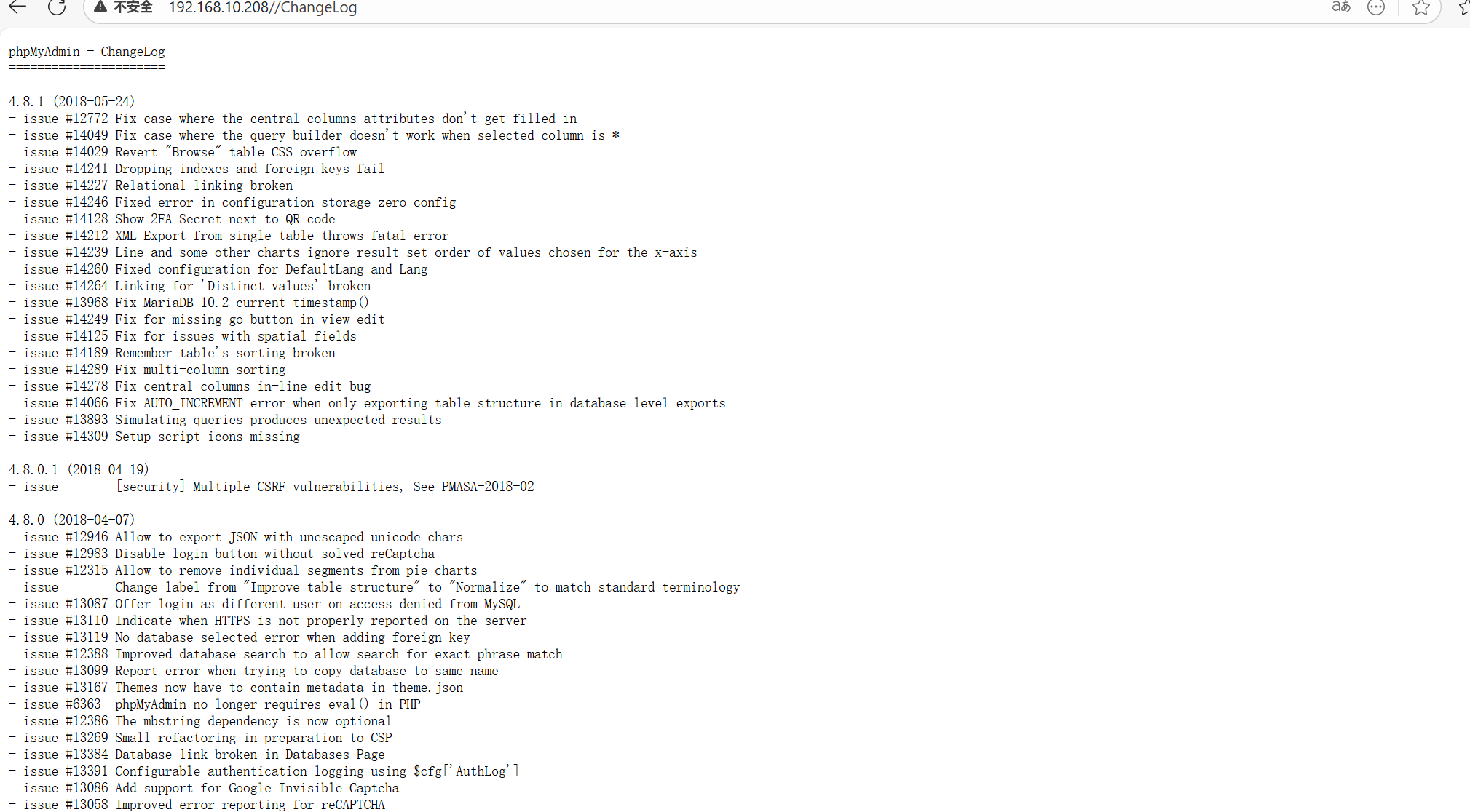通过xray也没有发现什么漏洞,在进行dirb和dirsearch的时候有一个ChangeLog,访问之后得到了phpmyadmin的版本