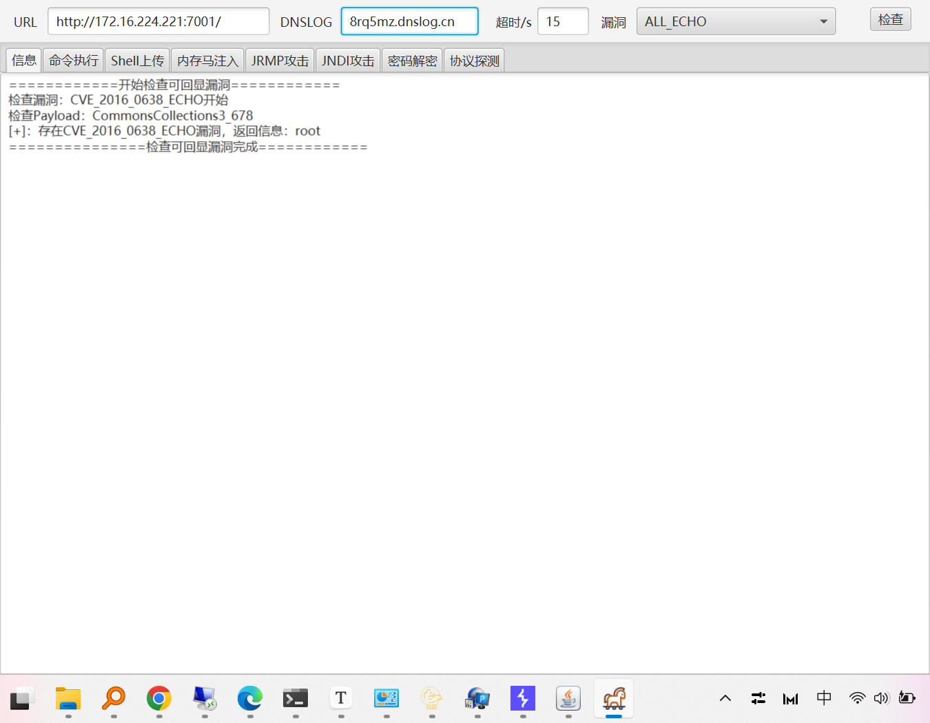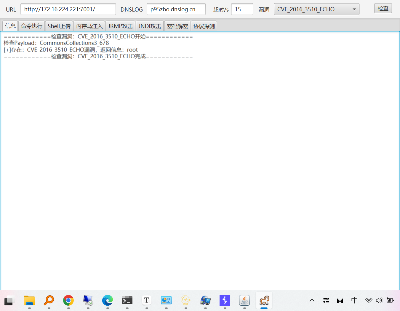 尝试使用其他的漏洞试试吧,因为个人比较懒,突然想要我的小狐狸工具箱还有weblogic的检测工具,所以上工具箱检测,这个平台好像每个洞都有啊
