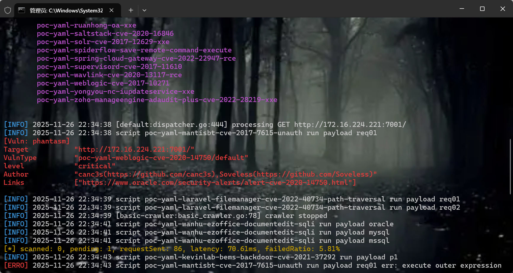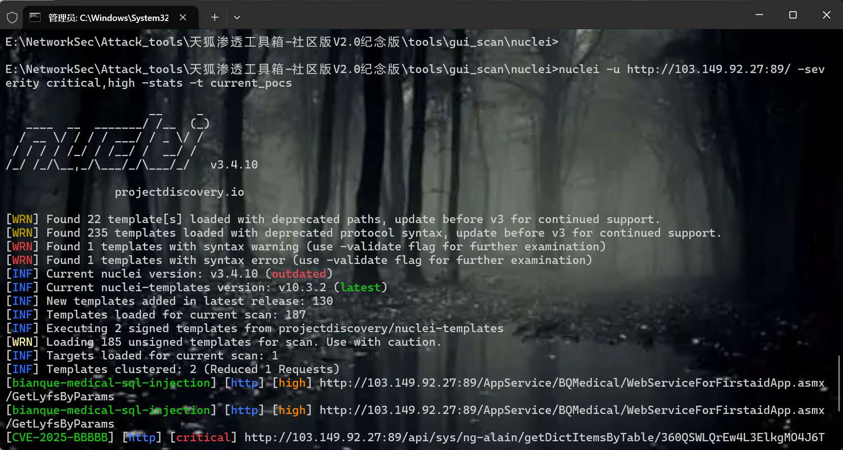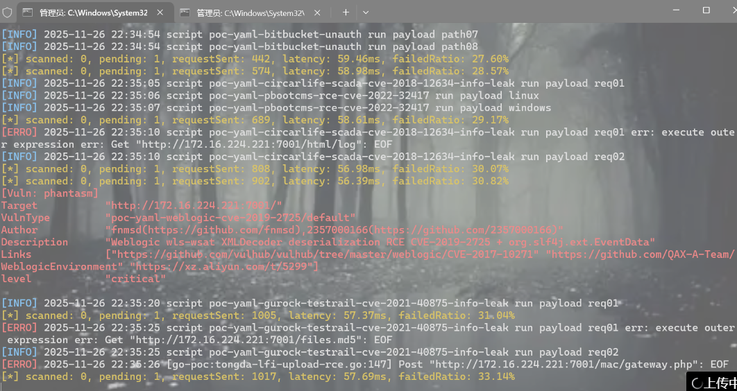 先去进行漏洞扫描看看能不能扫出来东西,本人使用nuclei&&xray以及fscan工具