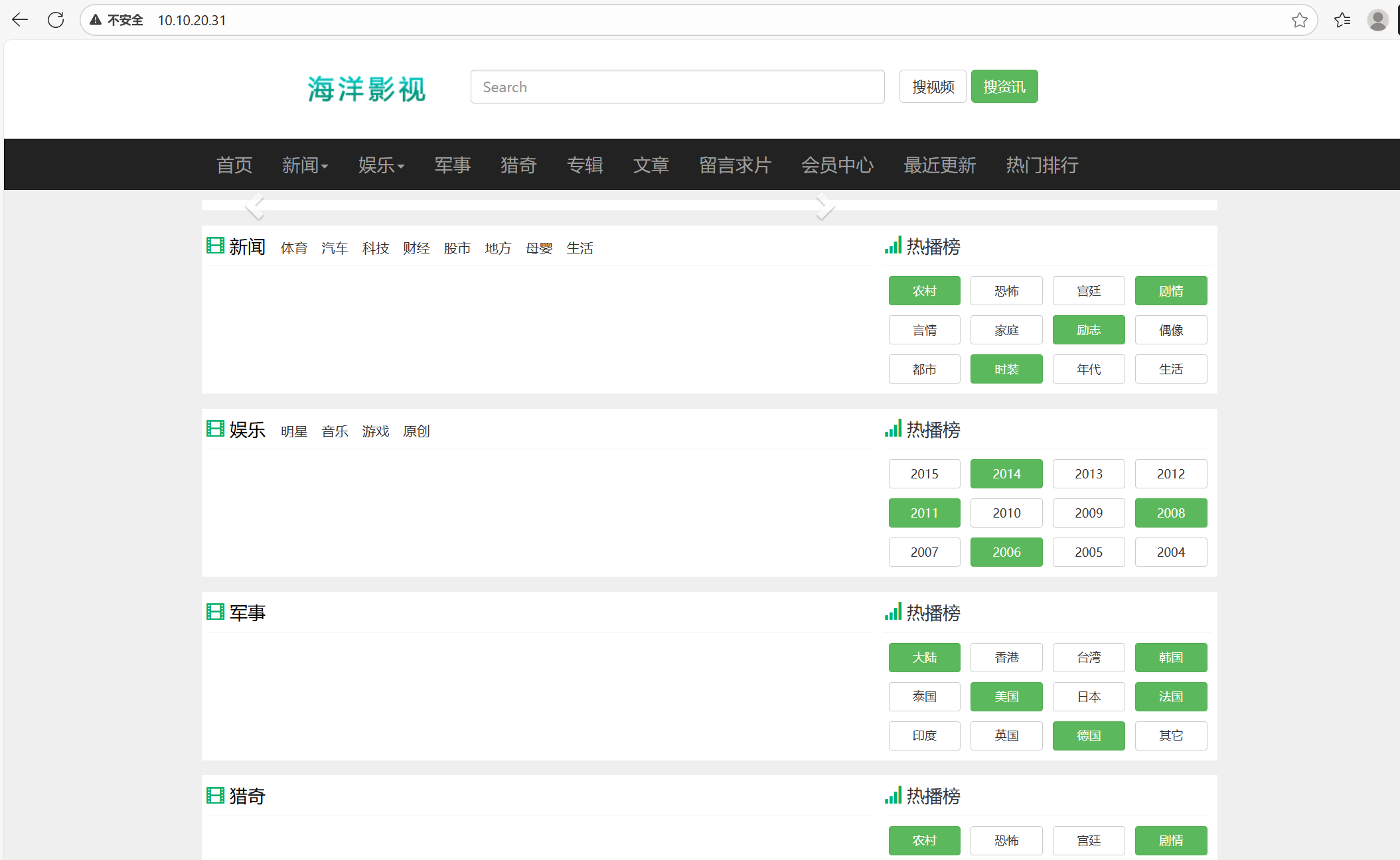 | 10.10.20.31 | 80 | 海洋CMS | 同上,两个海洋CMS站点都值得重点打 |