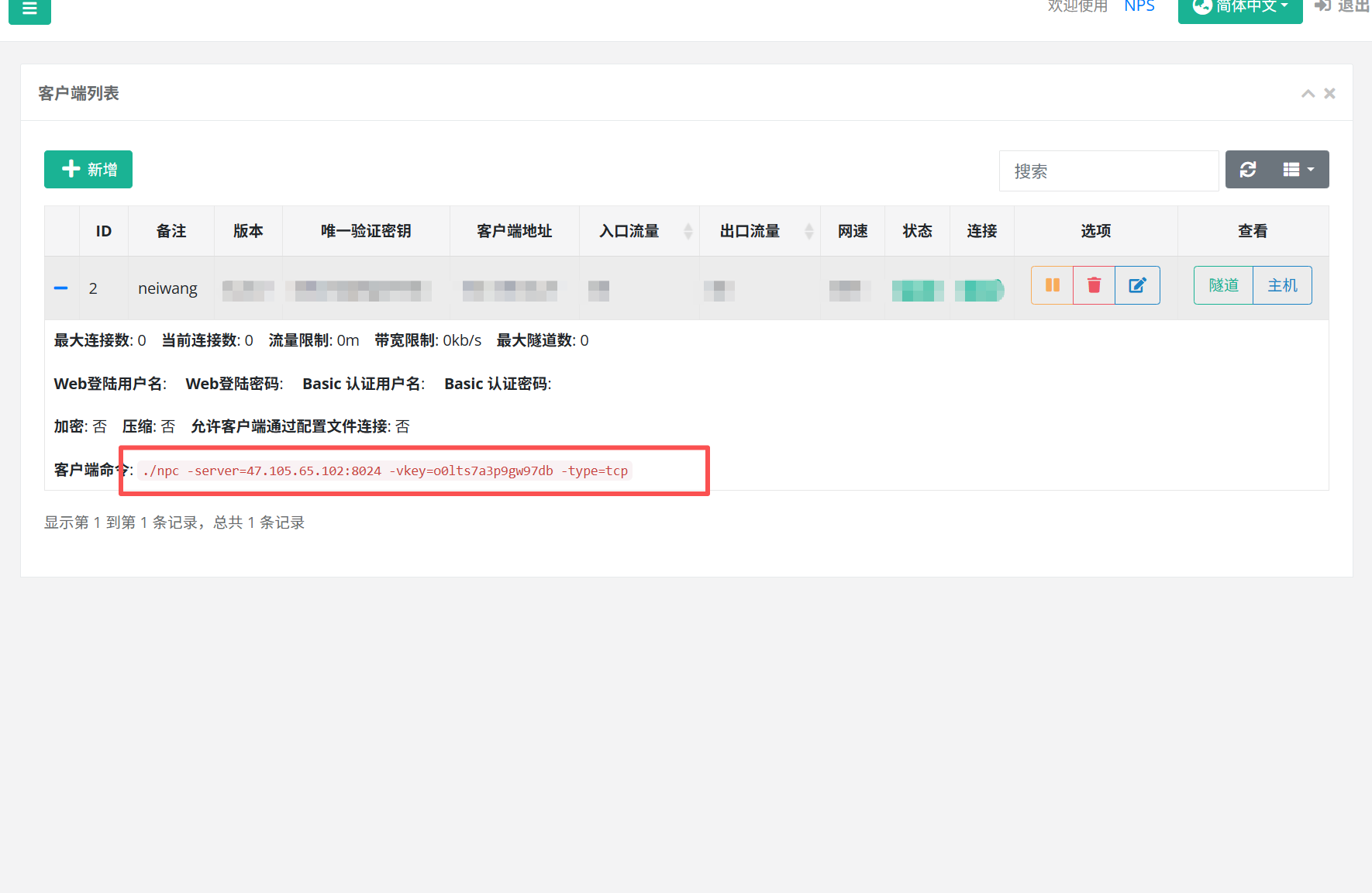 客户端命令复制到客户端运行上线nps服务端