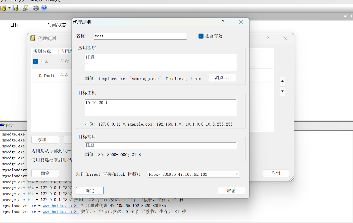 配置规则为去10.10.20.0的走代理