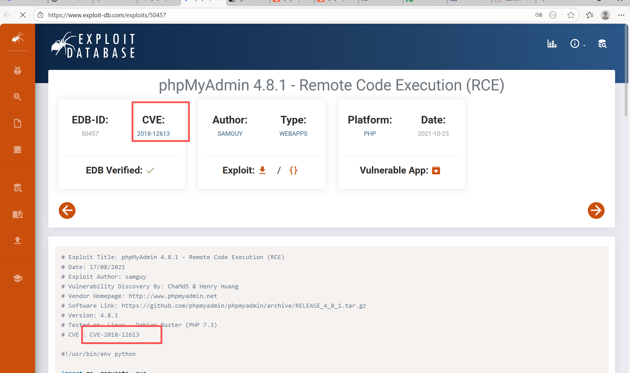 https://github.com/vulhub/vulhub/tree/master/phpmyadmin/CVE-2018-12613