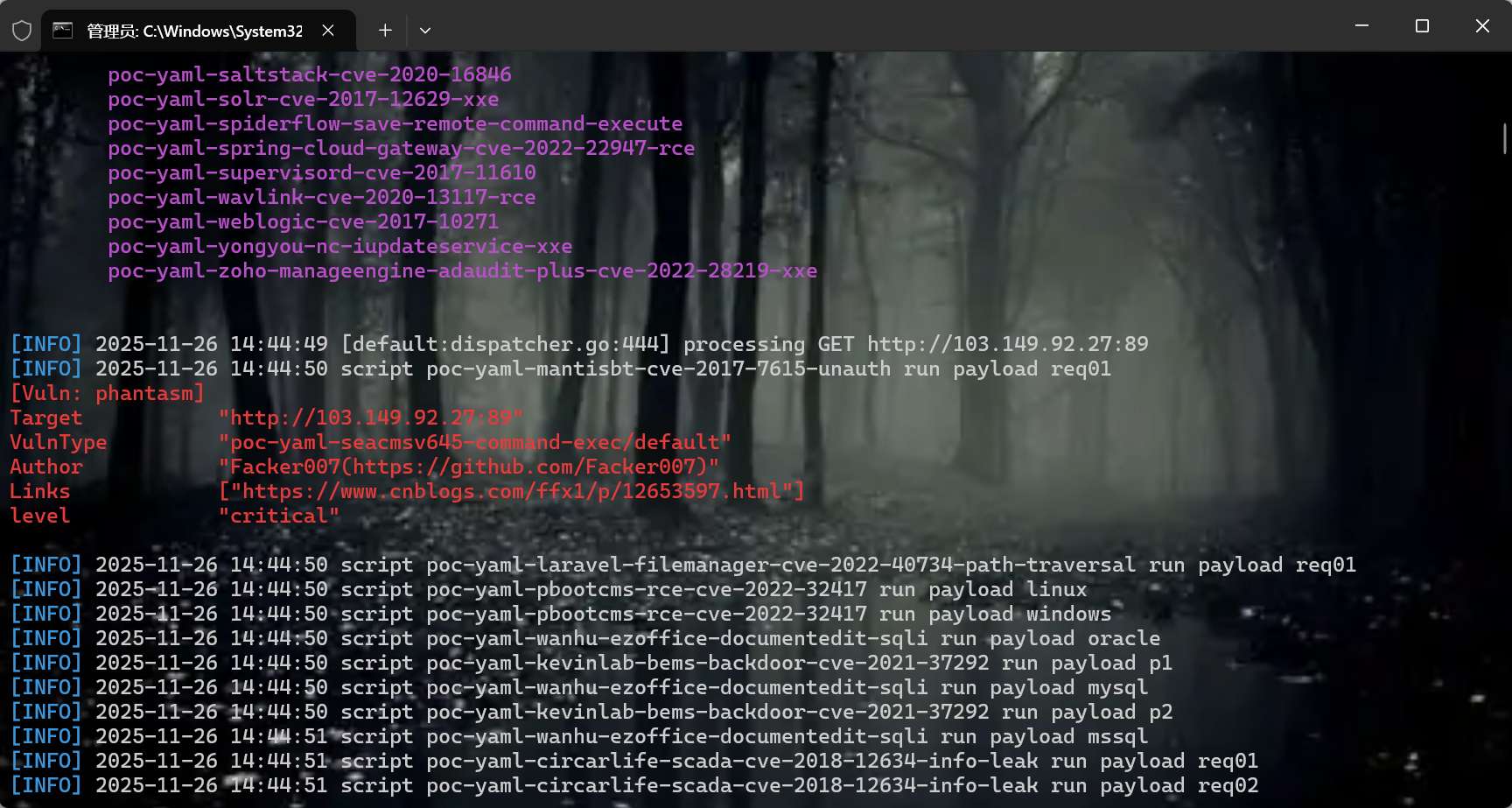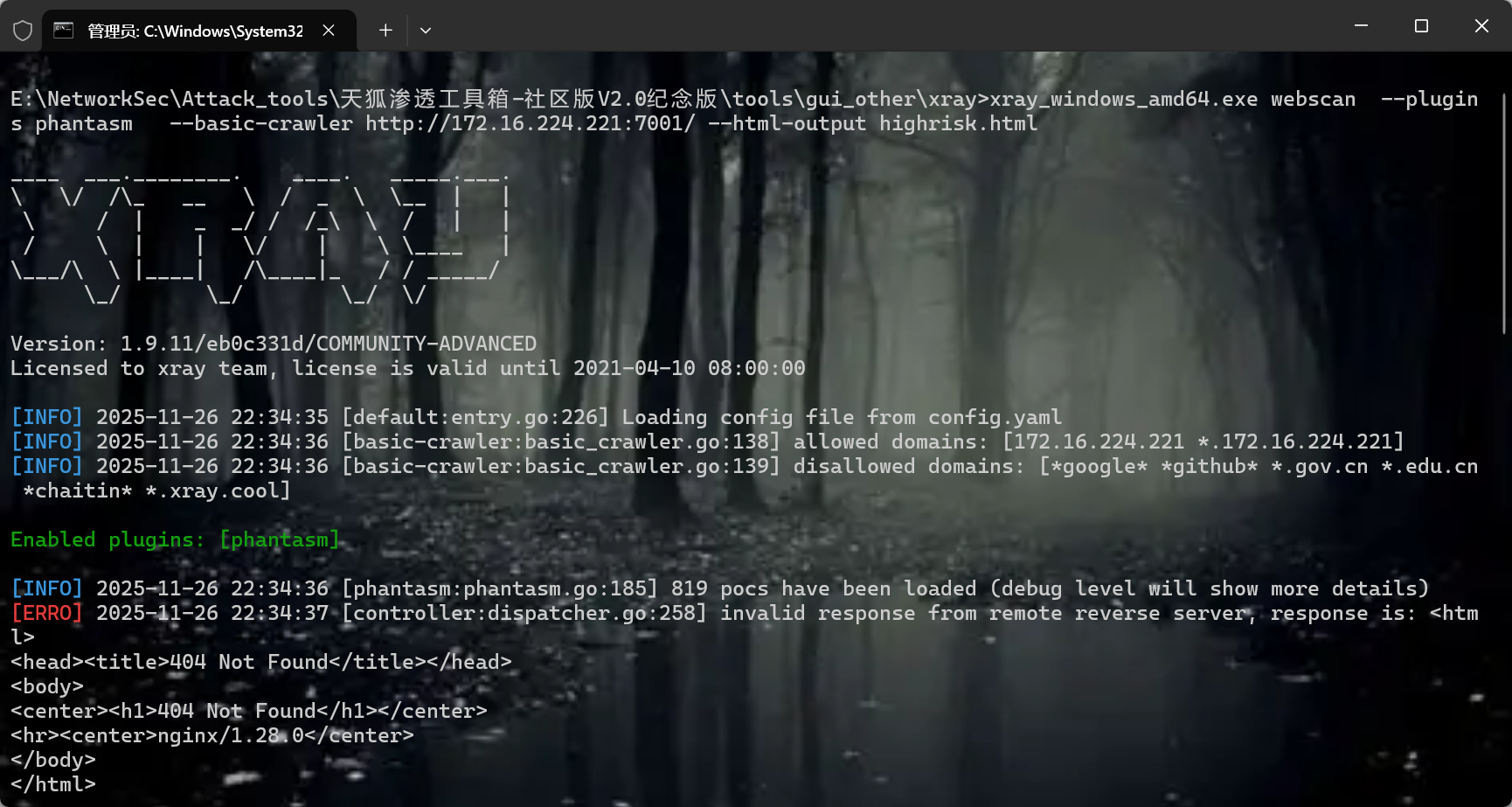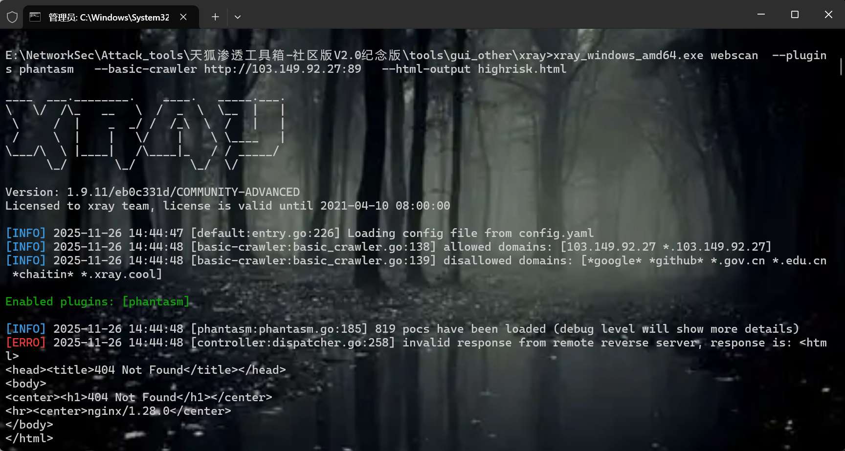 xray_windows_amd64.exe webscan --plugins phantasm --basic-crawler http://103.149.92.27:89 --html-output highrisk.htm