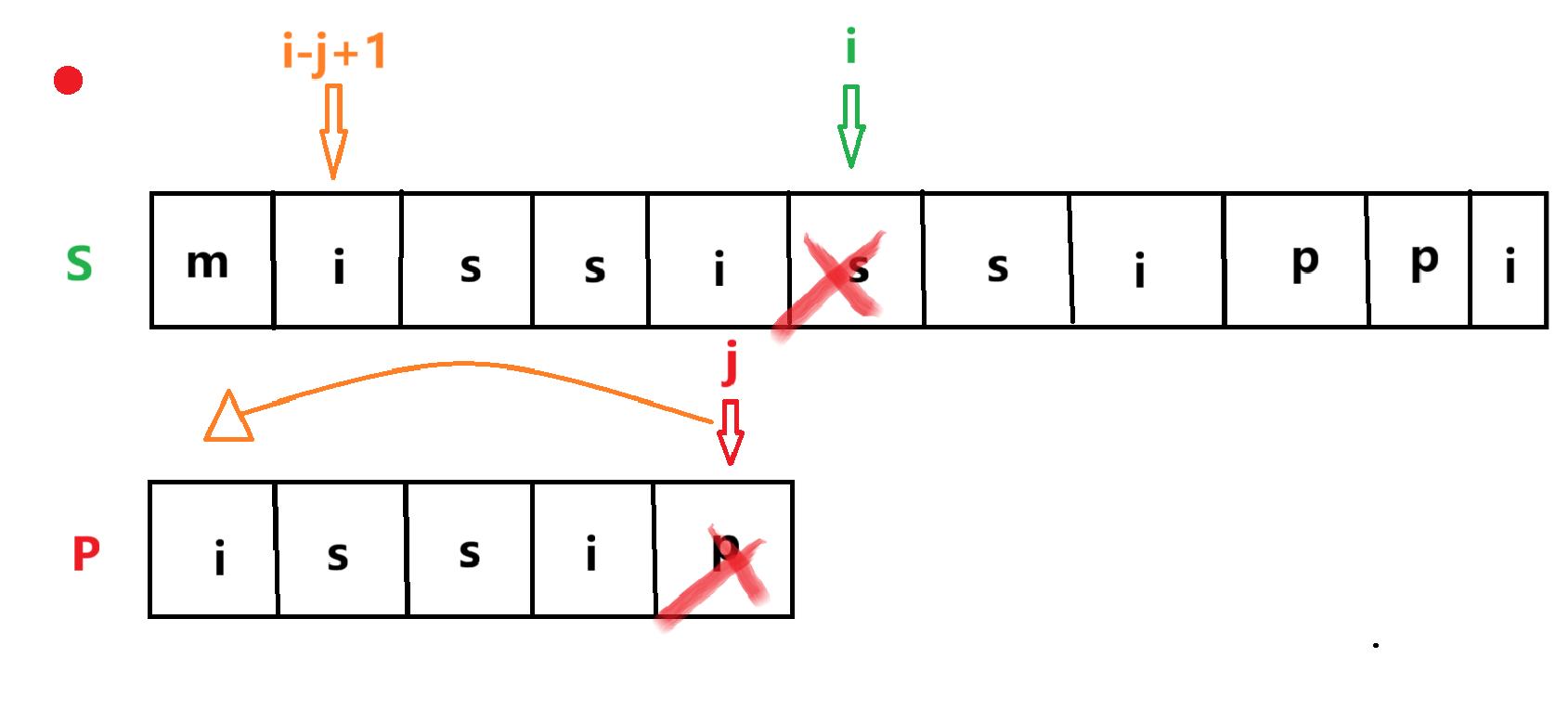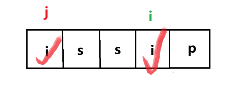 我们只需要判断S[i]是否等于P[j]即可,如果相等两个指针同时往后移动,如果直到P的所有字符都被比较完还是全部相等,那在S中,从[i-j到i-1]这一部分就是和模式串P所匹配的子串,