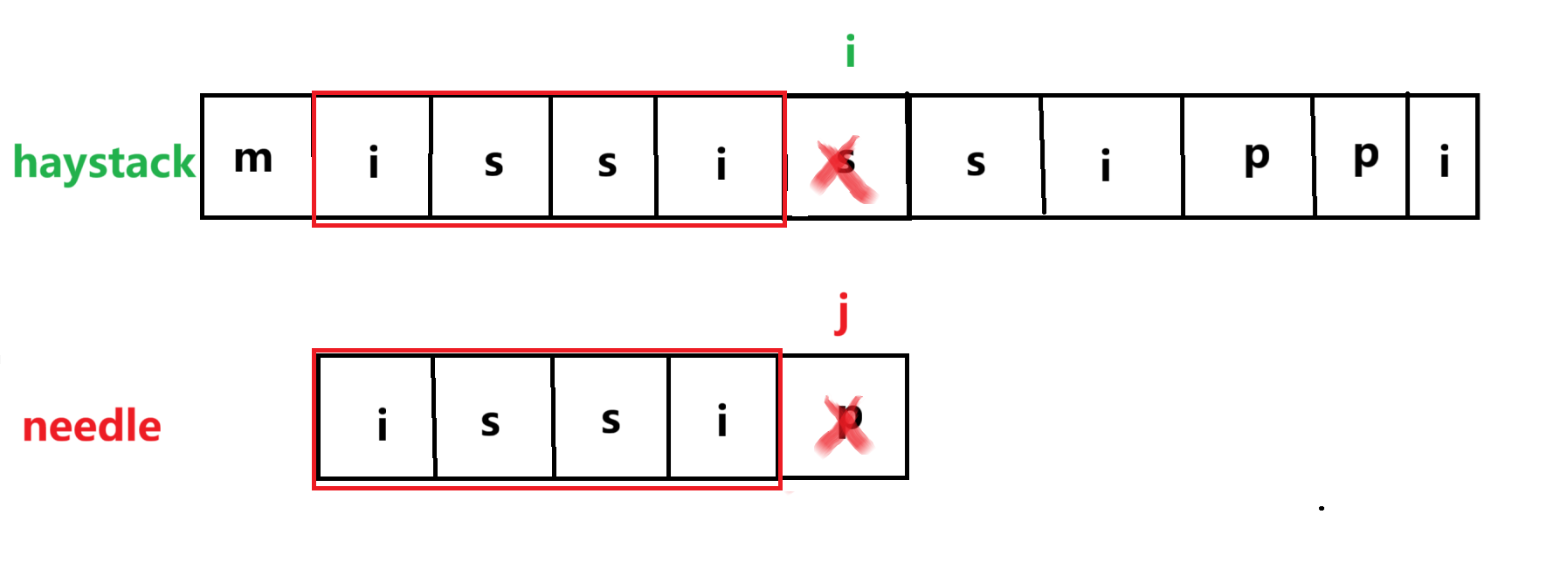 但是如果此时j不等于0了,并且needle[i]!=needle[j],那该怎么办呢!我们知道此时前缀是"is"