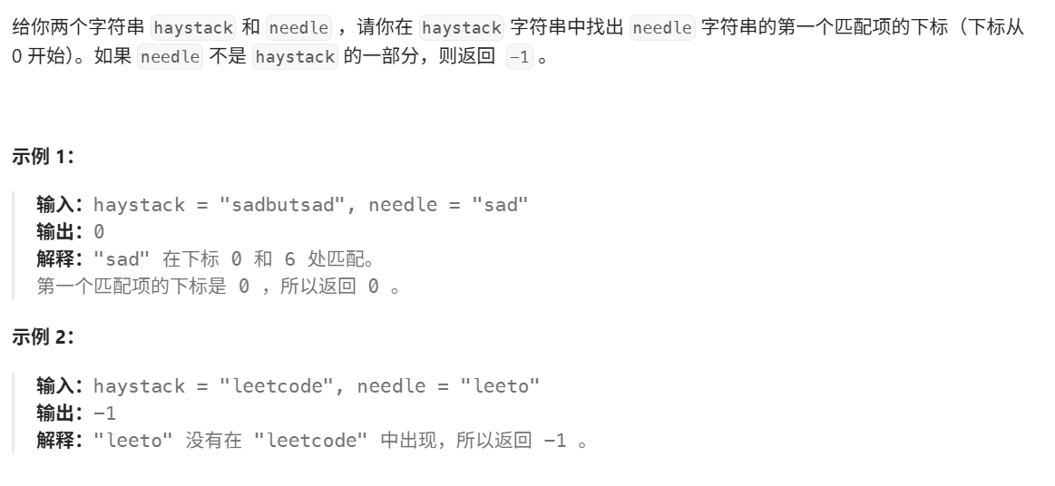题目选自LeetCode.28:找出字符串中第一个匹配项的下标: