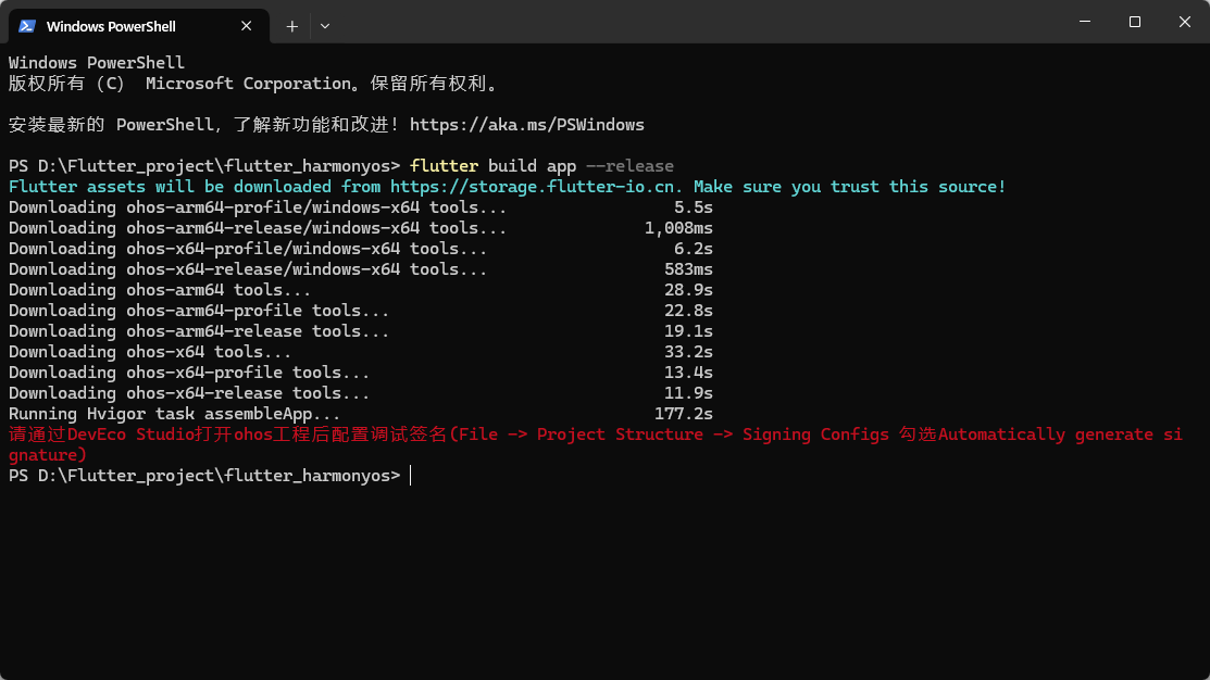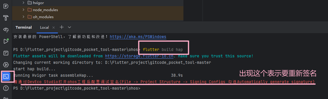 flutter create --platforms ohos <项目名>创建鸿蒙专属 Flutter 项目,支持 impeller-vulkan 渲染模式(可通过配置文件开关控制)。 - 需在 DevEco Studio 中配置自动签名,解决证书过期或系统时间校准问题,生成可运行的 hap 包。