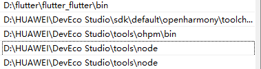 - 配置环境变量,包括 Flutter 的 bin 目录、PUB_HOSTED_URL/FLUTTER_STORAGE_BASE_URL(国内镜像源)、DEVECO_SDK_HOME(DevEco SDK 根路径),以及鸿蒙工具链(hdc、ohpm、hvigor 等)的路径。