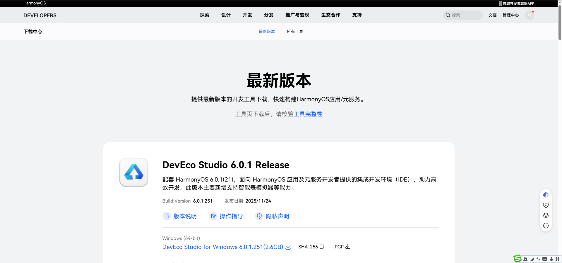 教程链接:https://blog.csdn.net/2301_80035882/article/details/155001657?spm=1001.2014.3001.5502感谢老师,这个教程简直就是保姆级,从下载到环境配置讲解的都非常清楚!!解决了我很多问题环境开发仅做部分过程和展示,不再过多赘述(1)进入官网下载DevEco Studio下载之前需要登陆华为账号,如果没有需要进行注册因为