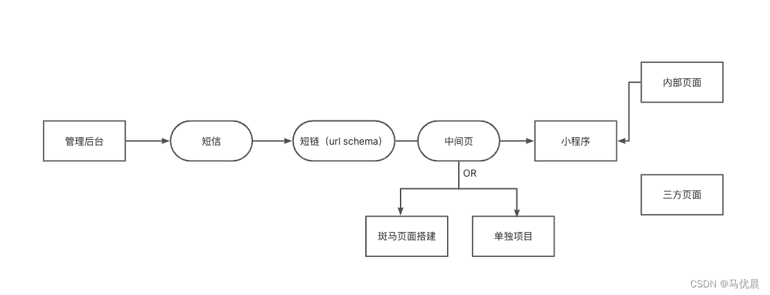 发送一条短信,里面包含一个短链,点击改链接跳转到小程序;
