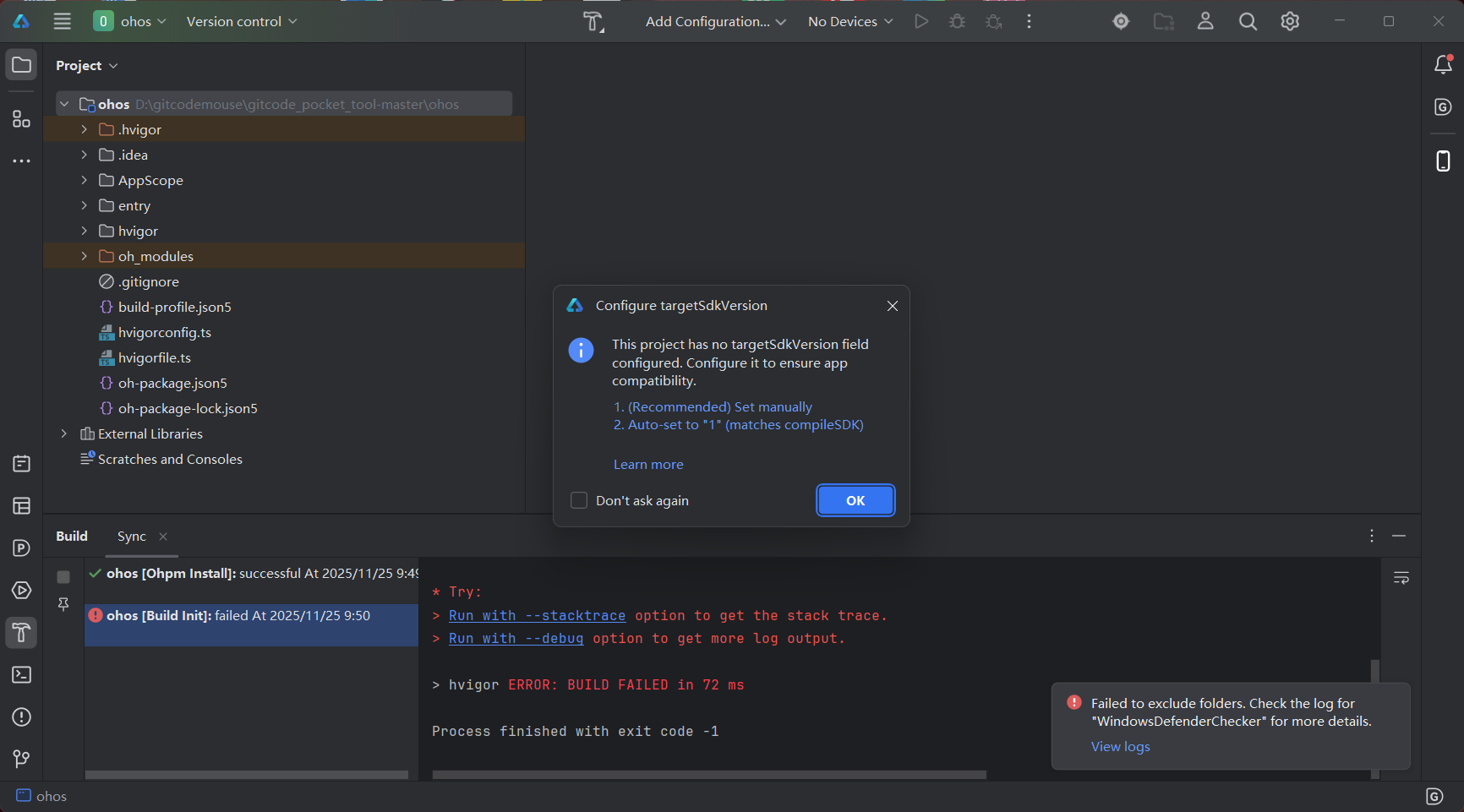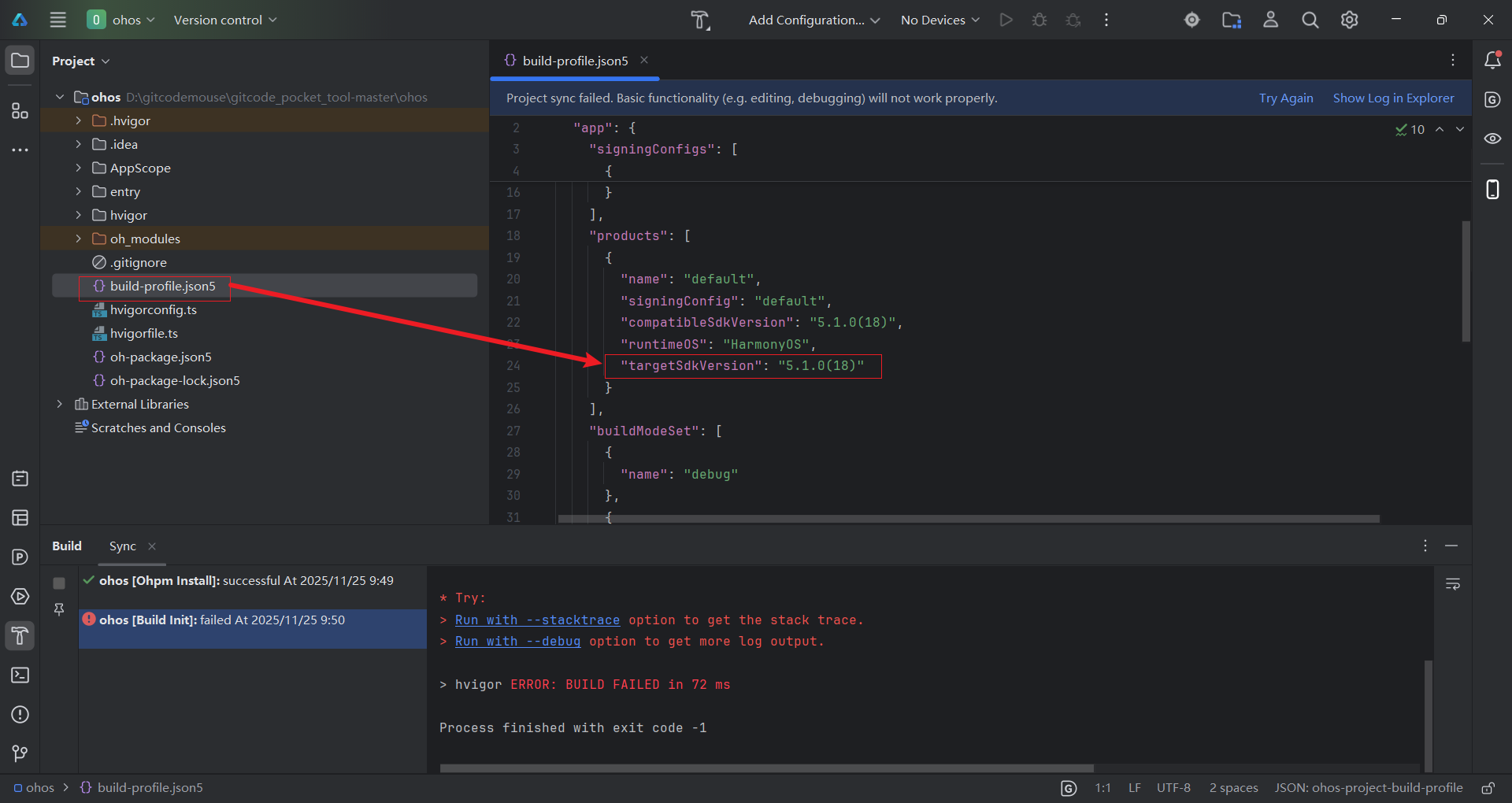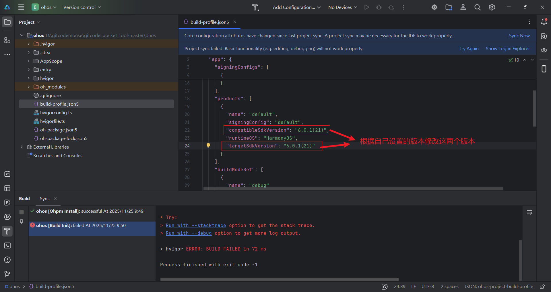 上面报错是没配置targetSdkVersion版本,根据本地环境配置相应的targetSdkVersion版本