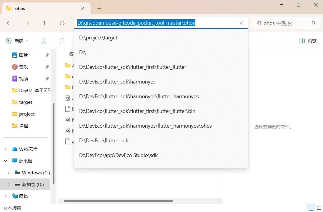 在解压项目文件夹中地址栏复制项目地址