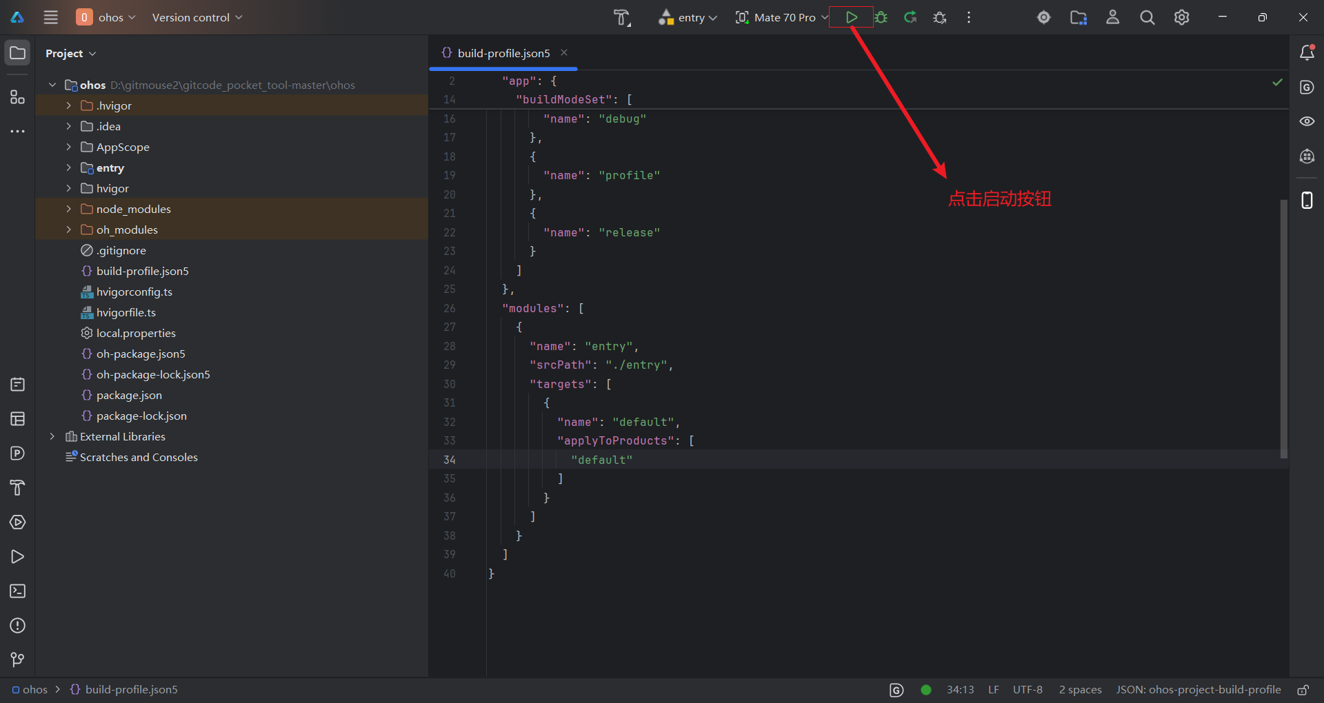 在DevEco Studio中打开本项目