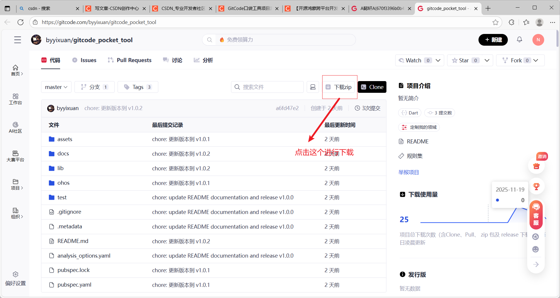 方法一:访问项目GitCode仓库,下载源代码: