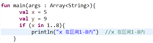 使用in运算符来检测某个数字是否在指定区间内,区间格式: x..y