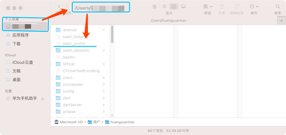 /Users/用户名下,设置成显示隐藏文件 - 这里我们看到一个名为