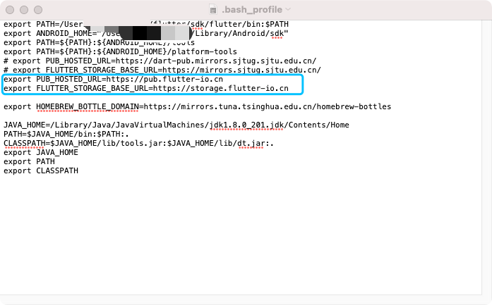 export PUB_HOSTED_URL=https://pub.flutter-io.cnexport FLUTTER_STORAGE_BASE_URL=https://storage.flutter-io.cn