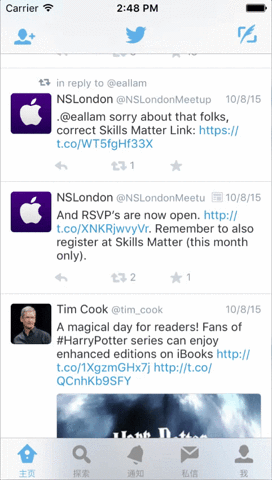 DXTwitterDXTwitter, an imitation sample client of Twitter, just like its name 2333. AboutThere are some interesting UI animations in Twitter iOS client, so I have been thinking about to imitate it sin