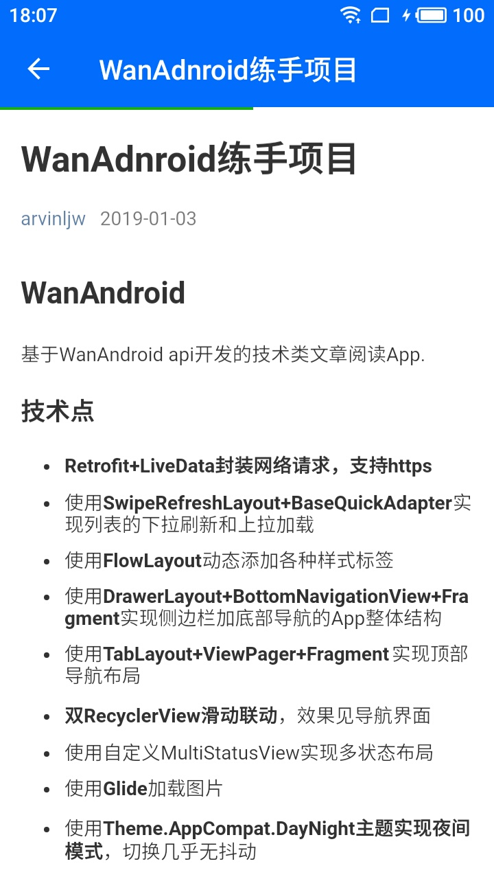 简介wanandroid项目基于Retrofit + RxJava2.0 + Kotlin + MVP用到的依赖implementation 'io.reactivex.rxjava2:rxjava:2.1.3'implementation 'com.squareup.retrofit2:retrofit:2.3.0'implementation ...