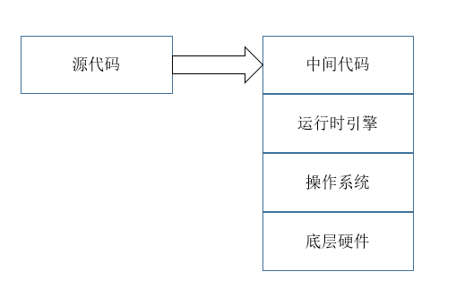 元编程之后,紧接着就出现了元驱动编程(Meta Driven Programming) :它是直接在目标语言中实现元语言的解释器,这是支撑中间件技术的基础方式。元驱动编程带来的最大的好处就是我们不必再面向具体的设备进行编程,元语言需要先预编译成中间代码,中间代码对于不同类型设备的适配工作完全可以交给“运行时引擎”去完成,从而达到了“write once and run anyway”的能力。 采用元驱动编程方式的开发工具包括:Java、Flex、.Net等。我们可以通过下图来理解元驱动编程的模型: