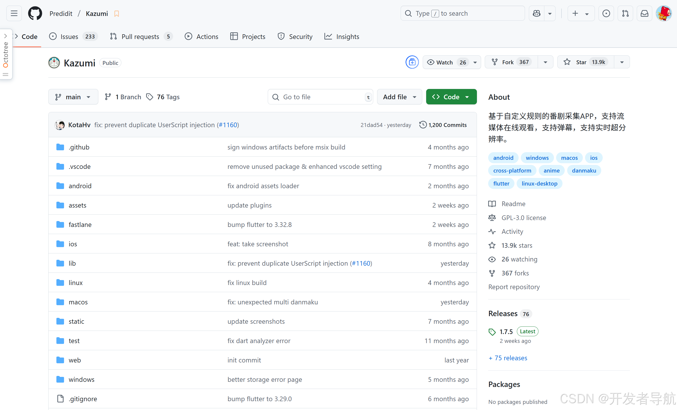 Kazumi 将采集自由度和播放画质提升结合在一起,让番剧爱好者不仅能“看”,还能“定制”自己的观影体验。它的开源属性也为二次开发和社区互动提供了无限可能。开发者导航友情提醒:如果你追求极致的个性化追番体验,不妨尝试一下 Kazumi。