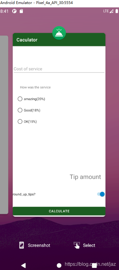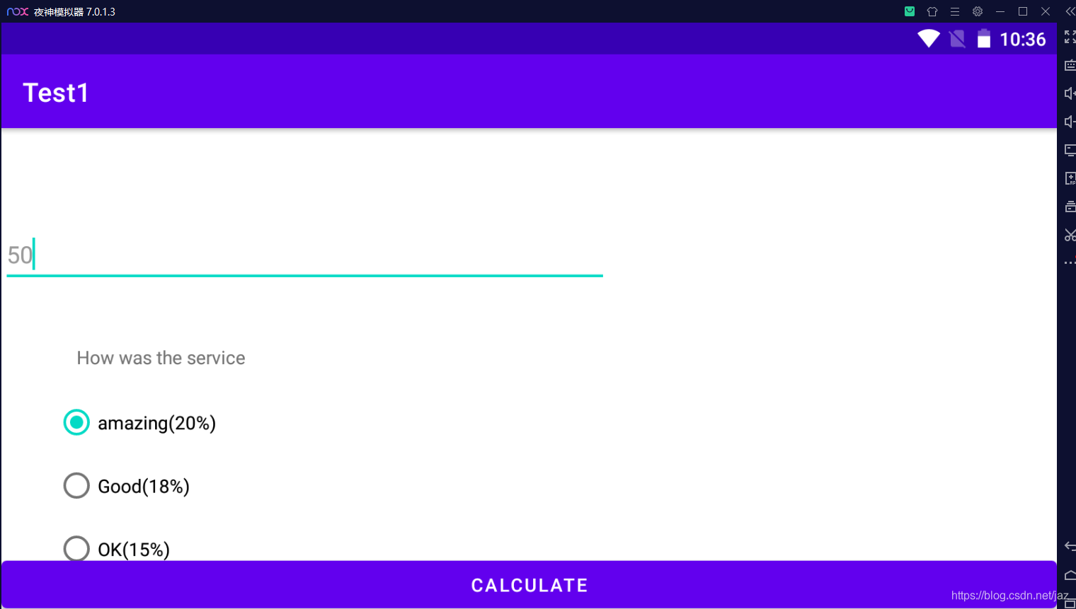 1 layoutString<resources><string name="app_name">Test1</string><string name="calculate">Calculate</string><string name="cost_of_service">Cost of service</string&