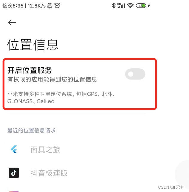 ... bool _isOpenGps = await LocationServiceCheck.checkLocationIsOpen; if(!_isOpenGps) { logV("定位权限申请通过"); AppSettings.openLocationSettings(); } ...动态申请定位权限
