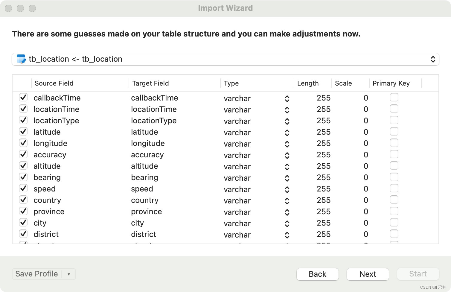 高德地图定位获取到的数据转换成Json字符串并用创建的.json文件保存起来,方便使用Navicat Preminum 生成表 。