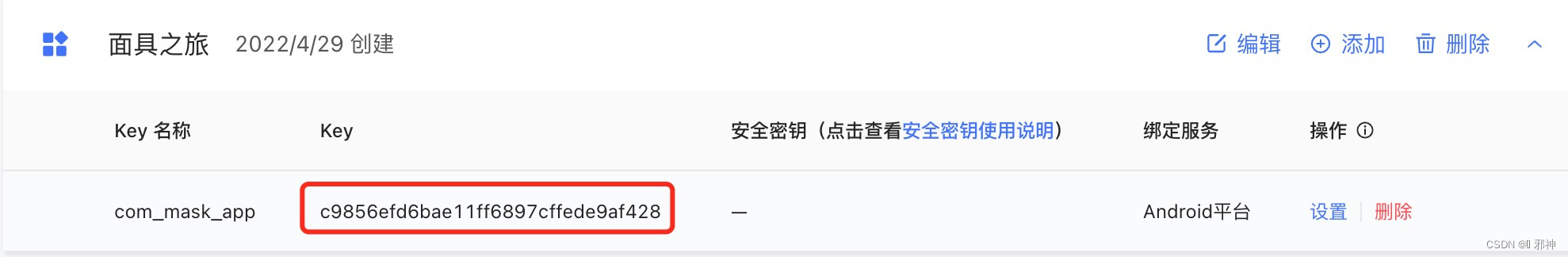 创建应用并生成key