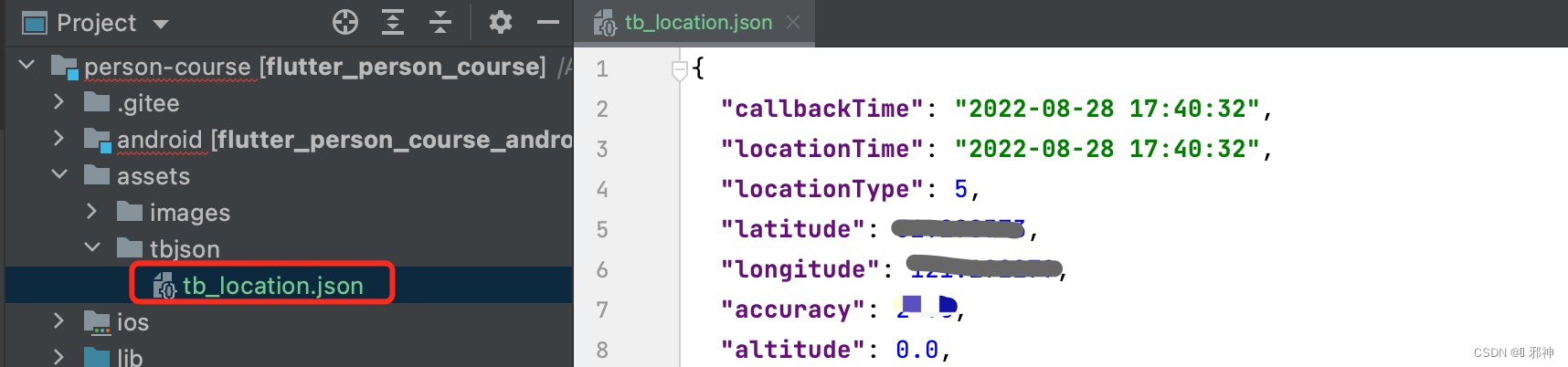 ...... late PHome _pHome; final Map<String, String> _homeMap = <String, String>{}; final GlobalKey<HomeSliverWidgetState> _homeSliverKey = GlobalKey(); @override void initState() { // TODO: implement initState super.initState(); amapLocaitonInit((Map<String, Object>? result) { logV("高德地图定位信息: ${json.encode(result)}"); _pHome.editLocationData(result!); }); _pHome = PHome(); _pHome.attachView(this); _loadHomeData(); } ......I/flutter (23766): AppInfo v 高德地图定位信息: {"callbackTime":"2022-08-29 23:03:12","locationTime":"2022-08-29 23:03:13","locationType":5,"latitude":31.298391,"longitude":121.192297,"accuracy":2 5.0,"altitude":0.0,"bearing":0.0,"speed":0.0,"country":"中国","province":"上海 市","city":"上海市","district":"嘉定区","street":"于塘路","streetNumber":"498 号","cityCode":"021","adCode":"310114","address":"上海市嘉定区于塘路498号靠近顾八 房","description":"在顾八房附近"} I/flutter (23766): AppInfo v 相应数据:{resultCode: 200, message: SUCCESS, data: null}查询云服务数据库数据