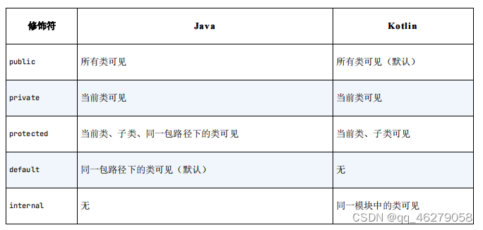 Java和Kotlin函数可见性修饰符对照表